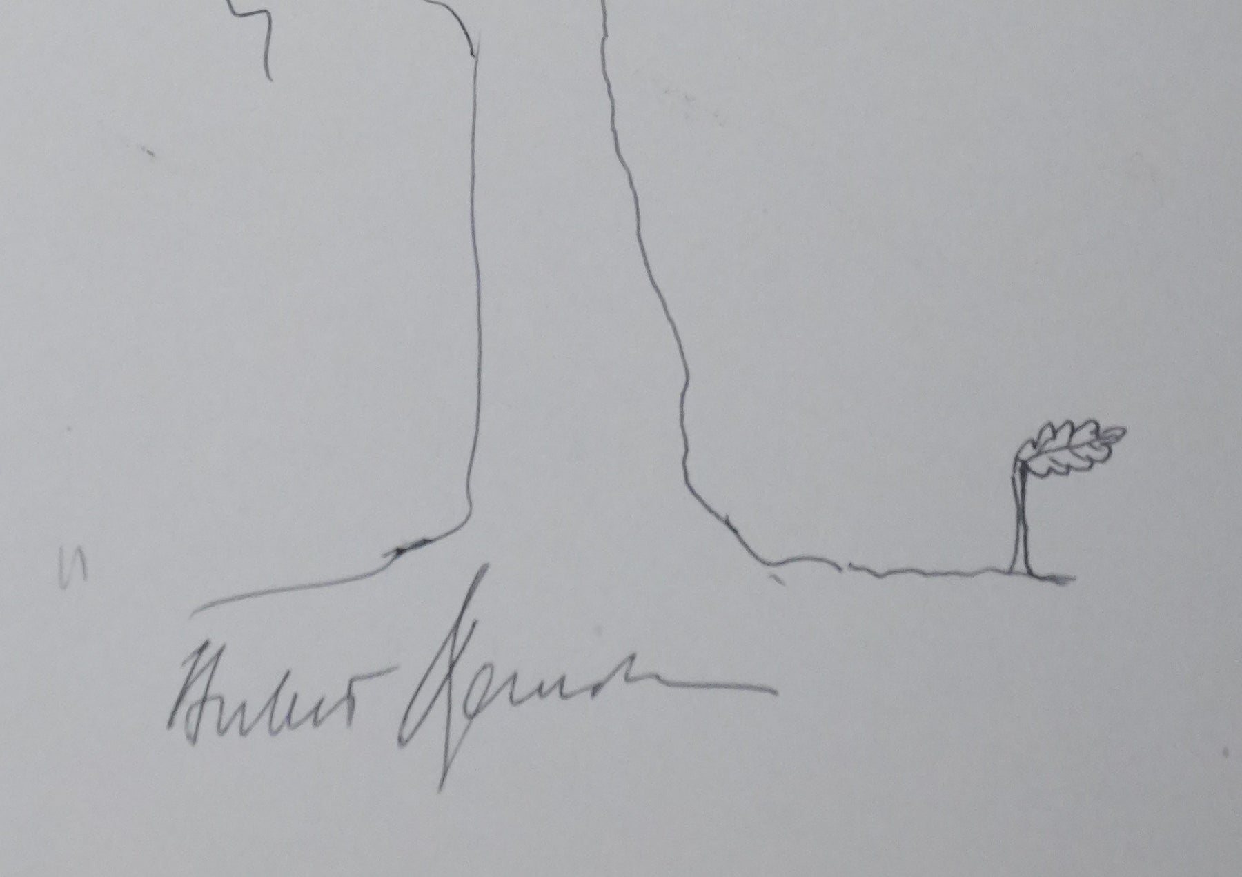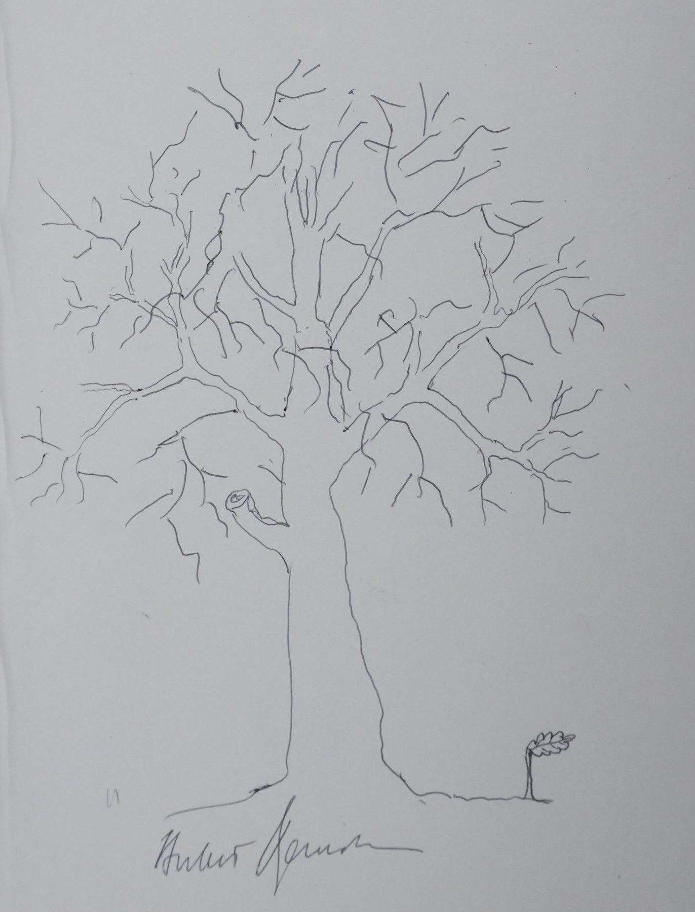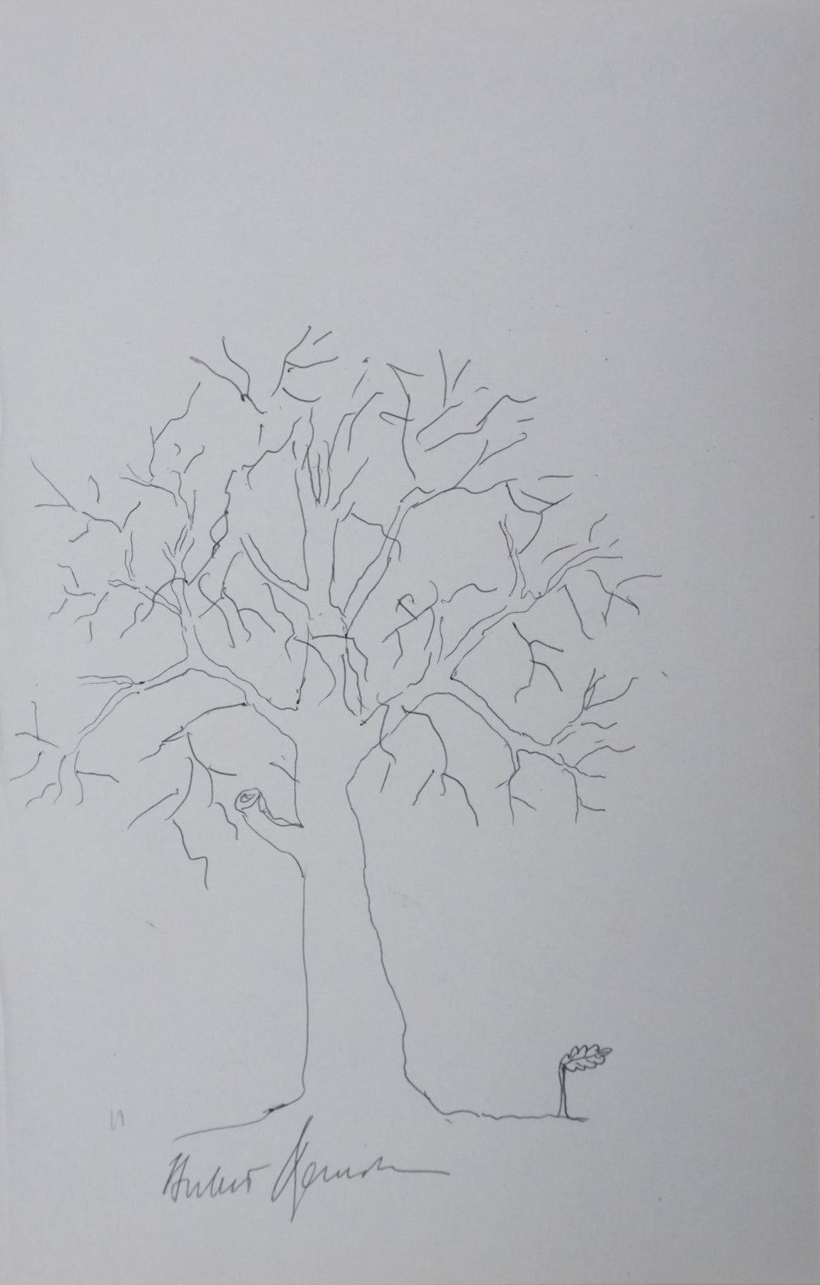 PROVENANCE : Ce dessin provient de la collection personnelle de Pierre Lhoste. Journaliste de radio, Pierre Lhoste (1913-1984) demanda aux personnalités qu’il recevait de réaliser un autographe accompagné d'un dessin d’arbre, constituant ainsi un témoignage unique de ses entretiens.