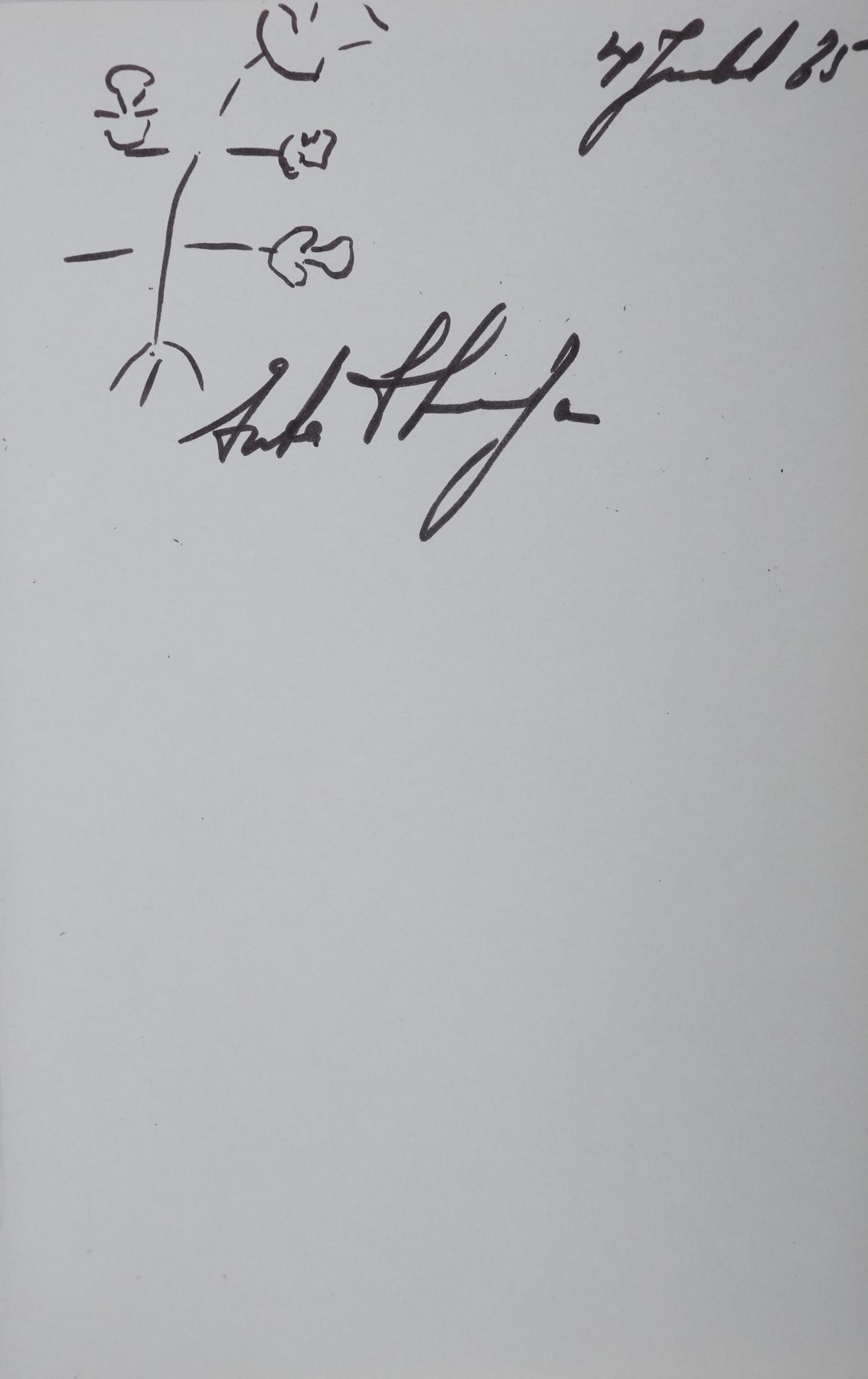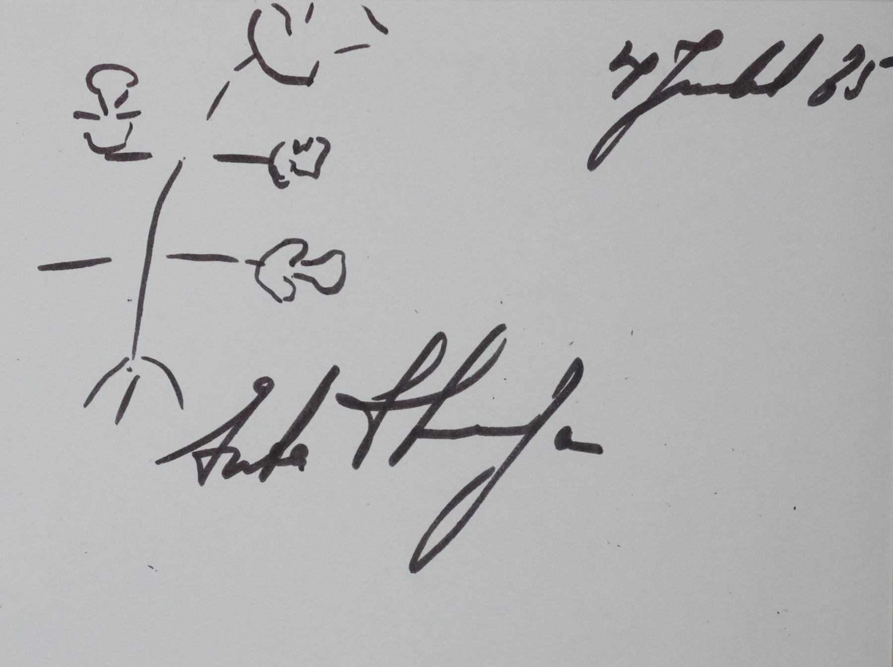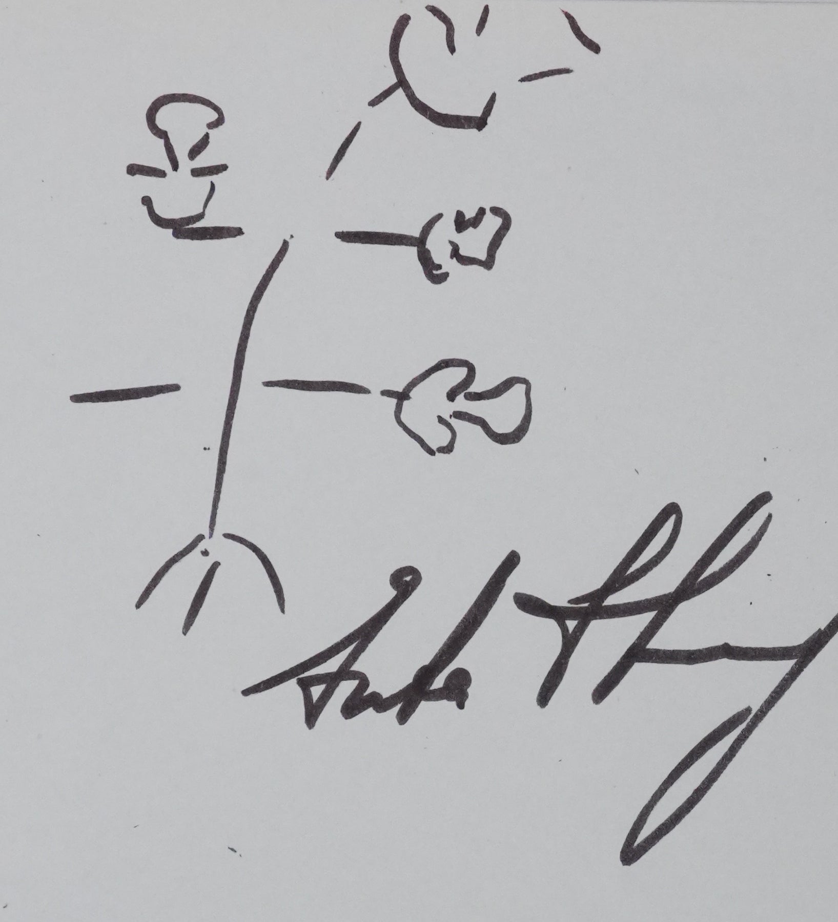 PROVENANCE : Ce dessin provient de la collection personnelle de Pierre Lhoste. Journaliste de radio, Pierre Lhoste (1913-1984) demanda aux personnalités qu’il recevait de réaliser un autographe accompagné d'un dessin d’arbre, constituant ainsi un témoignage unique de ses entretiens.