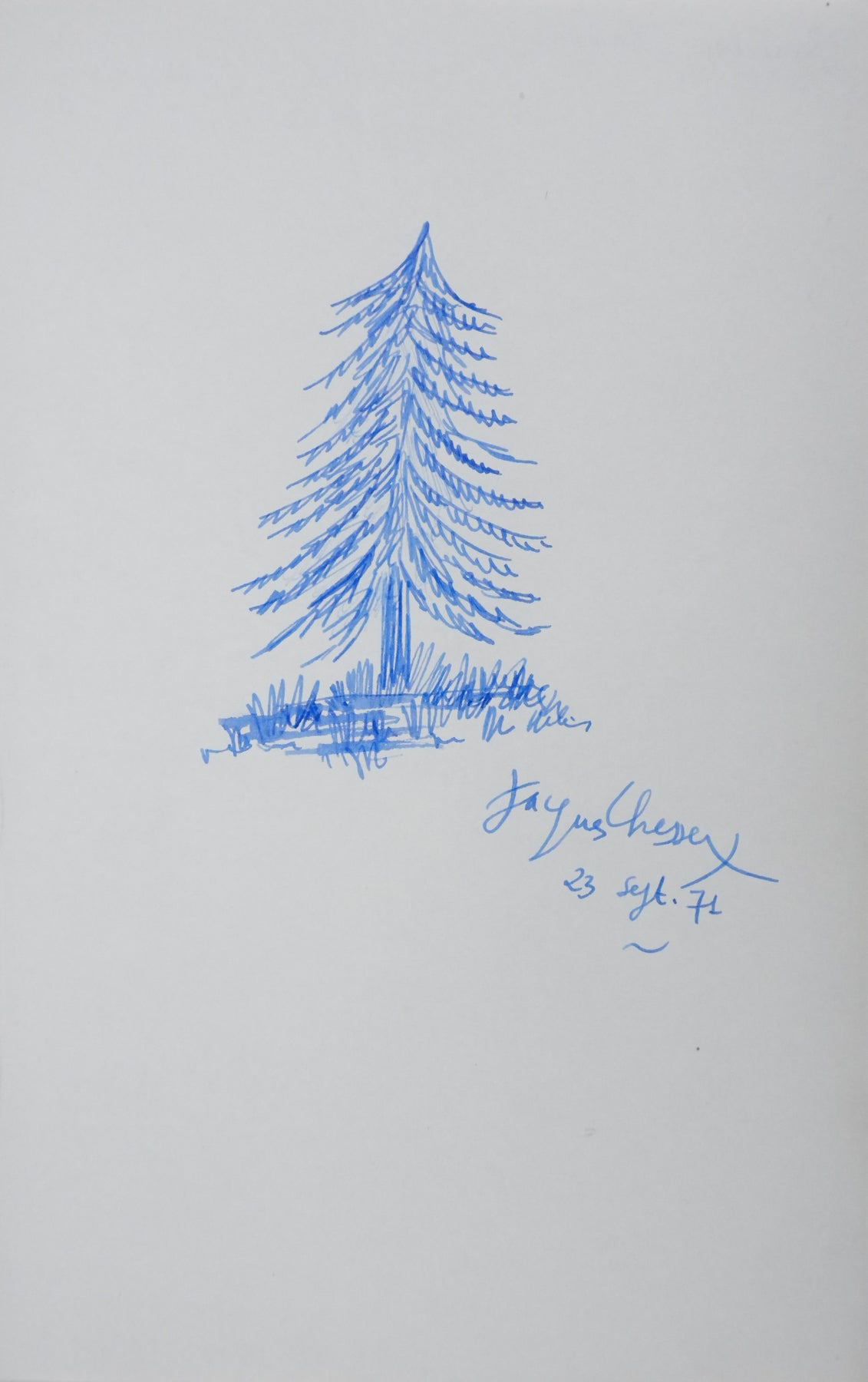 PROVENANCE : Ce dessin provient de la collection personnelle de Pierre Lhoste. Journaliste de radio, Pierre Lhoste (1913-1984) demanda aux personnalités qu’il recevait de réaliser un autographe accompagné d'un dessin d’arbre, constituant ainsi un témoignage unique de ses entretiens.