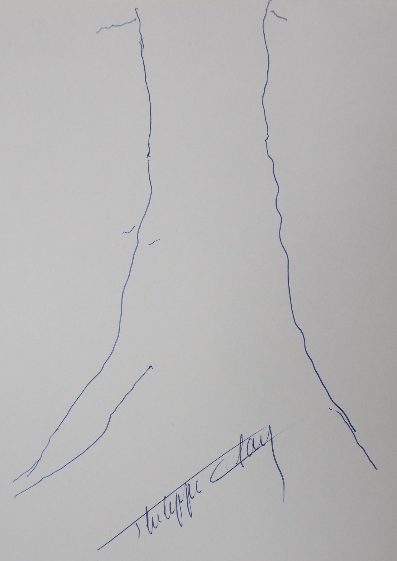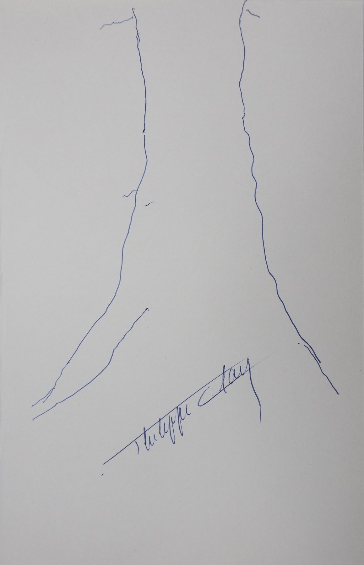 Philippe CLAY : Le tronc d'arbre en bleu, Autographe et dessin original signé