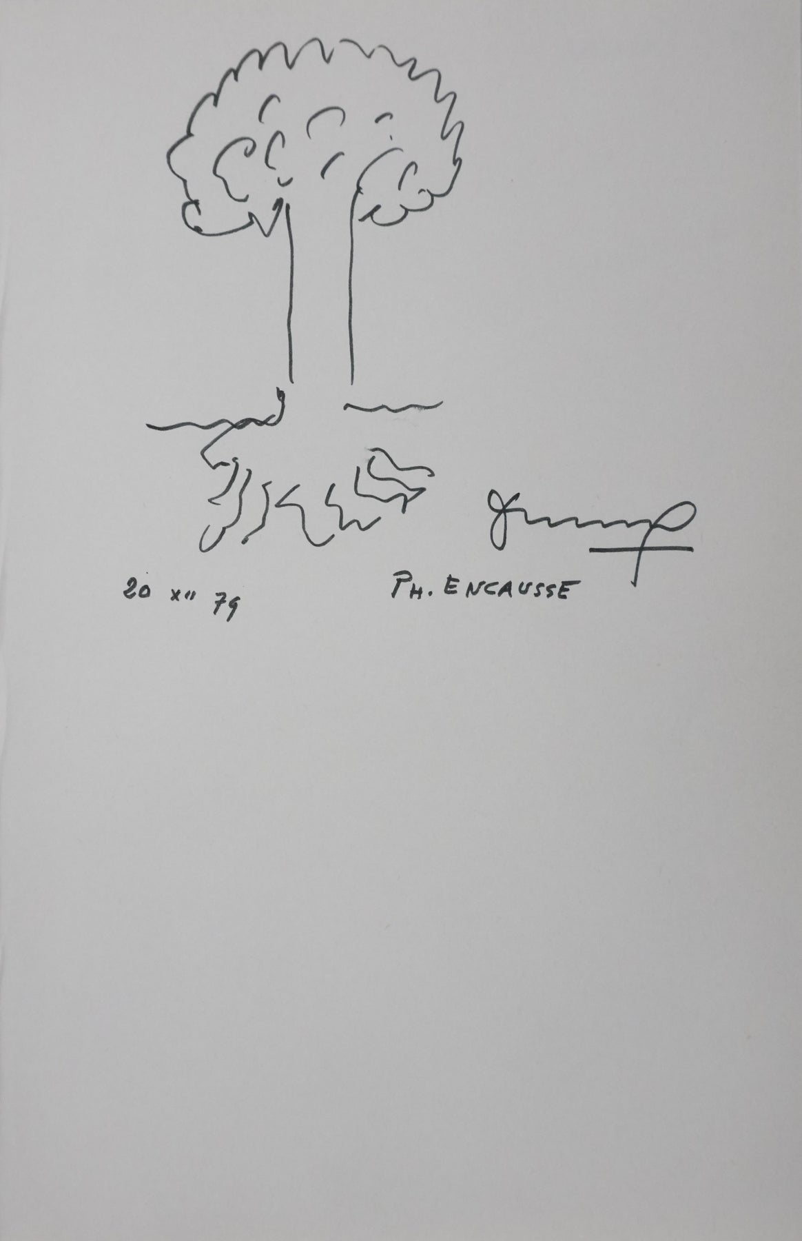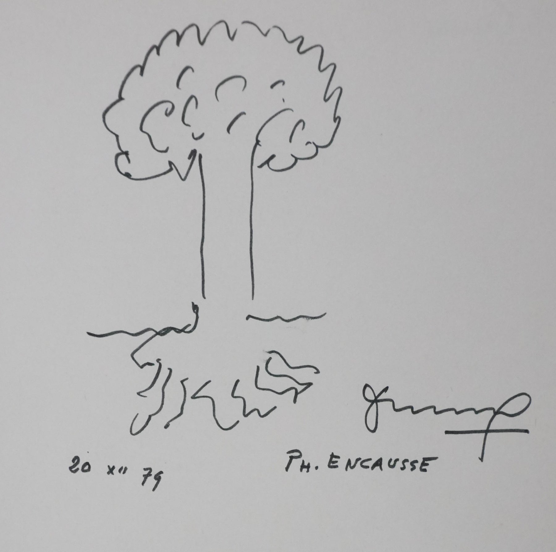 PROVENANCE : Ce dessin provient de la collection personnelle de Pierre Lhoste. Journaliste de radio, Pierre Lhoste (1913-1984) demanda aux personnalités qu’il recevait de réaliser un autographe accompagné d'un dessin d’arbre, constituant ainsi un témoignage unique de ses entretiens.
