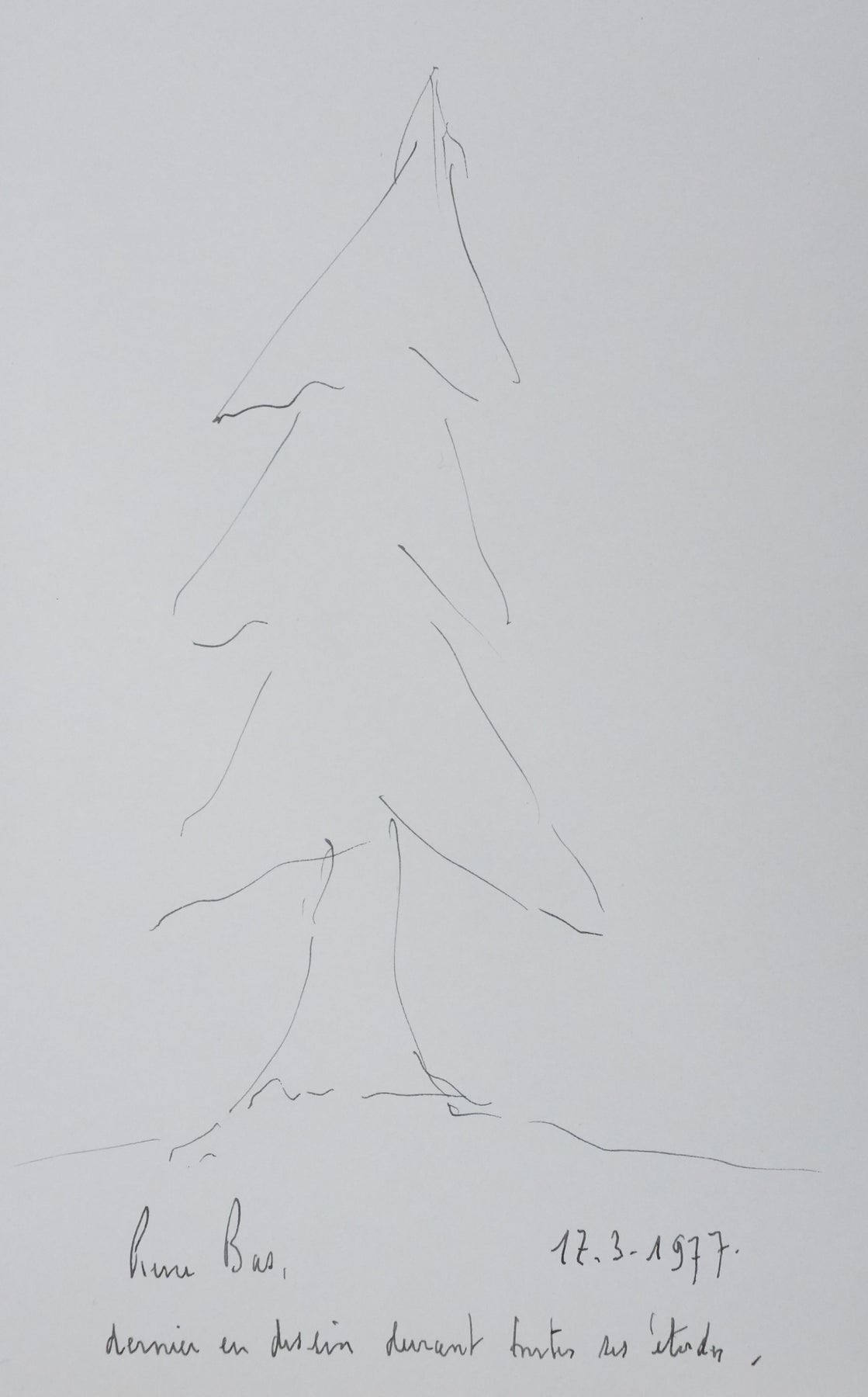 PROVENANCE : Ce dessin provient de la collection personnelle de Pierre Lhoste. Journaliste de radio, Pierre Lhoste (1913-1984) demanda aux personnalités qu’il recevait de réaliser un autographe accompagné d'un dessin d’arbre, constituant ainsi un témoignage unique de ses entretiens.