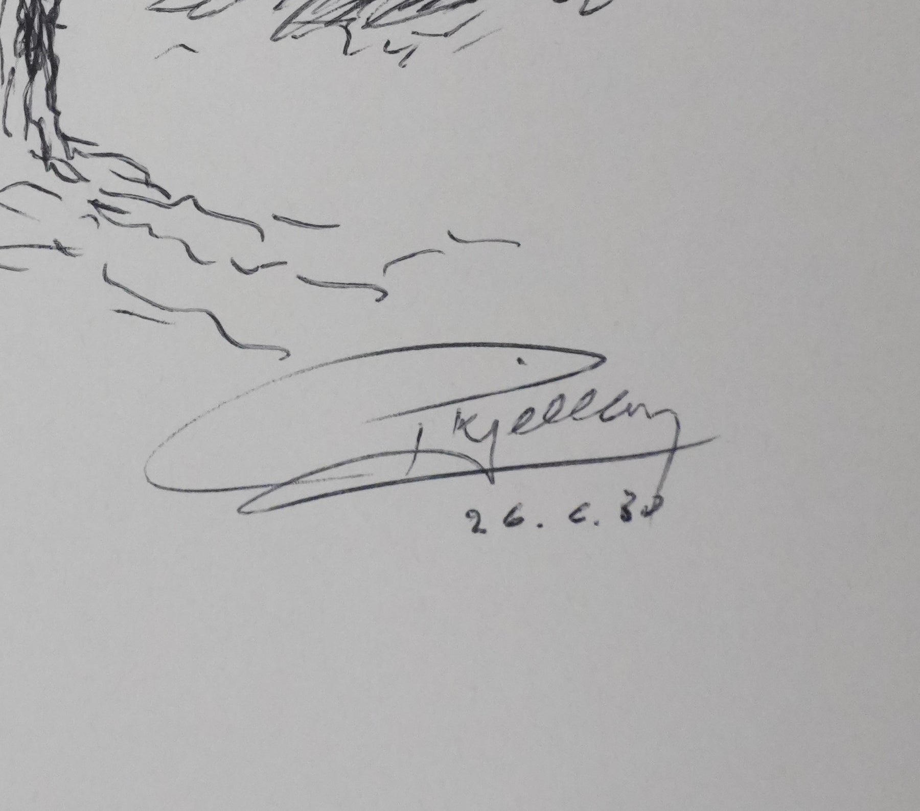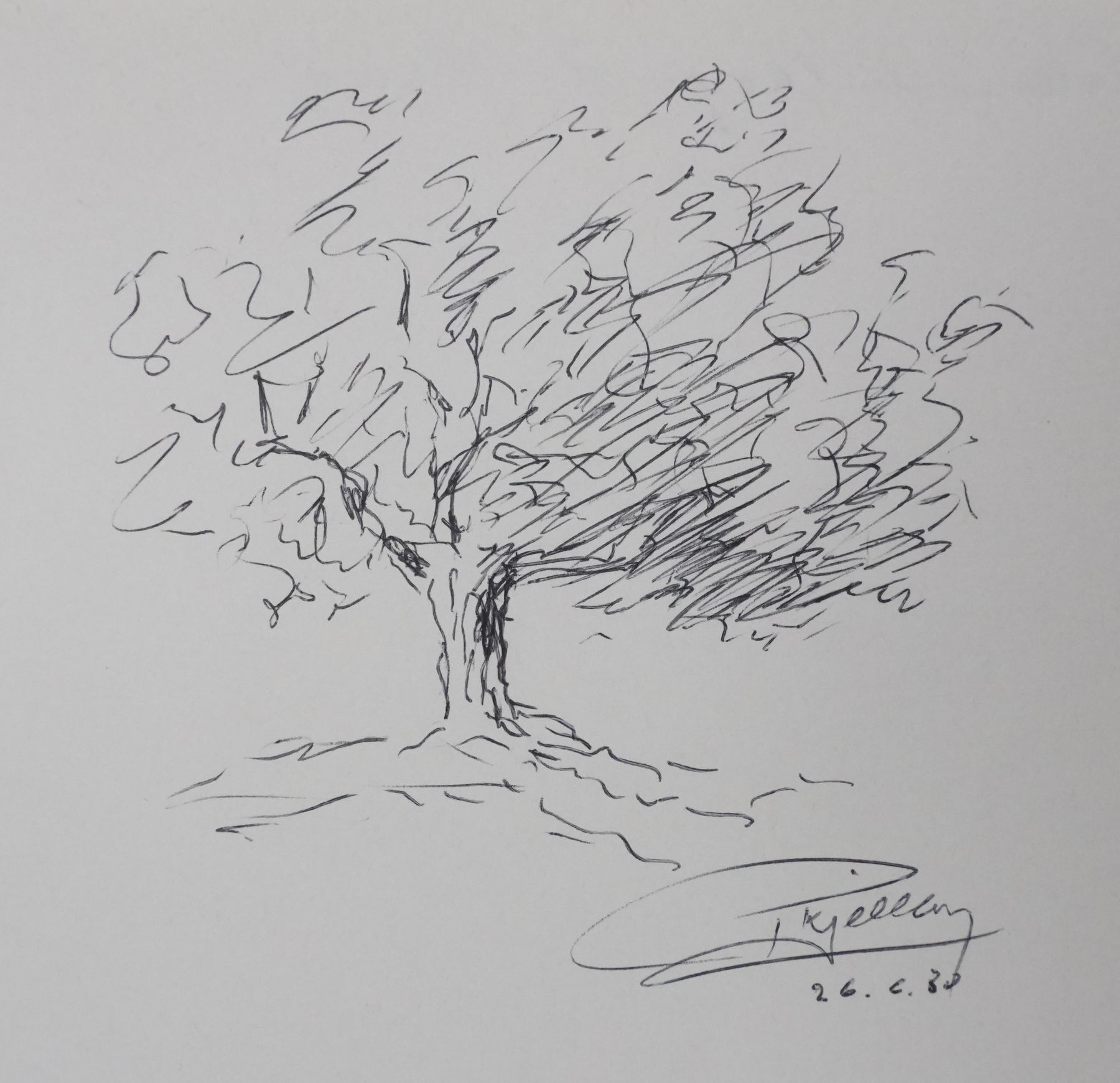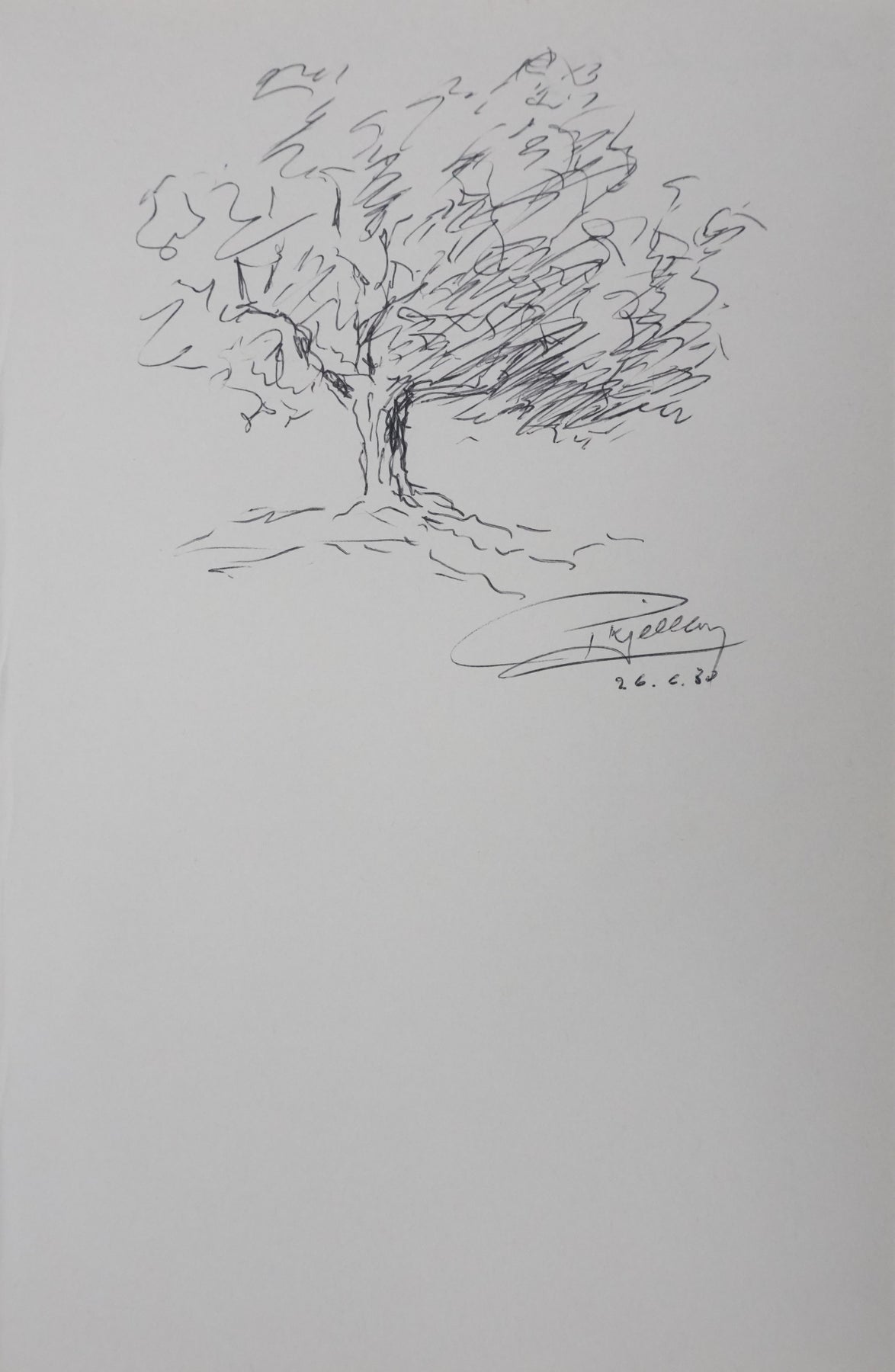 PROVENANCE : Ce dessin provient de la collection personnelle de Pierre Lhoste. Journaliste de radio, Pierre Lhoste (1913-1984) demanda aux personnalités qu’il recevait de réaliser un autographe accompagné d'un dessin d’arbre, constituant ainsi un témoignage unique de ses entretiens.