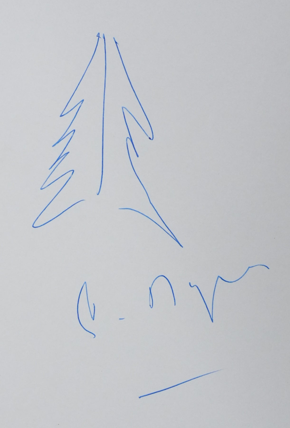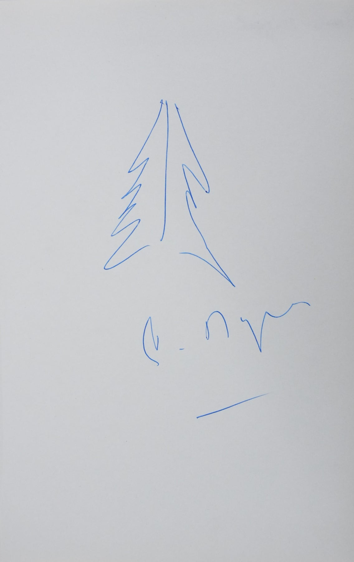 PROVENANCE : Ce dessin provient de la collection personnelle de Pierre Lhoste. Journaliste de radio, Pierre Lhoste (1913-1984) demanda aux personnalités qu’il recevait de réaliser un autographe accompagné d'un dessin d’arbre, constituant ainsi un témoignage unique de ses entretiens.