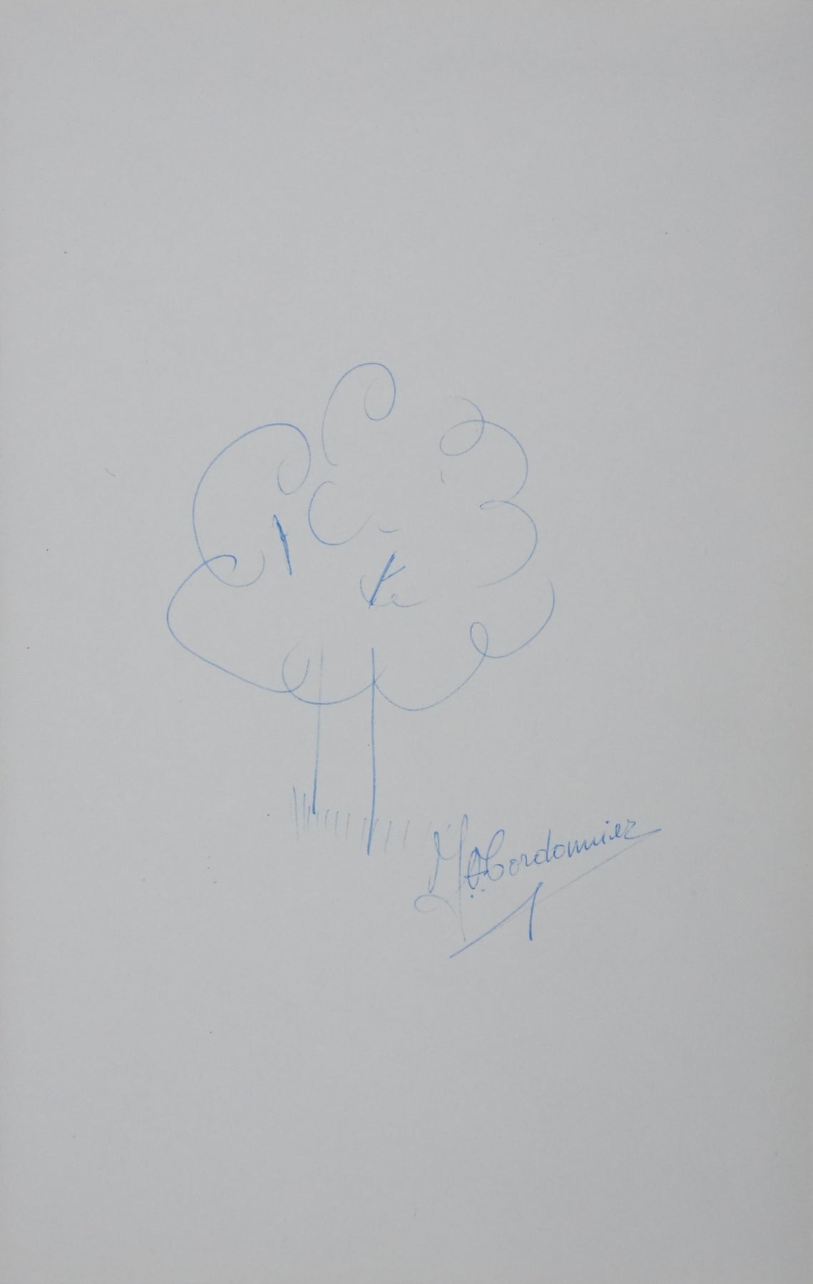 PROVENANCE : Ce dessin provient de la collection personnelle de Pierre Lhoste. Journaliste de radio, Pierre Lhoste (1913-1984) demanda aux personnalités qu’il recevait de réaliser un autographe accompagné d'un dessin d’arbre, constituant ainsi un témoignage unique de ses entretiens.
