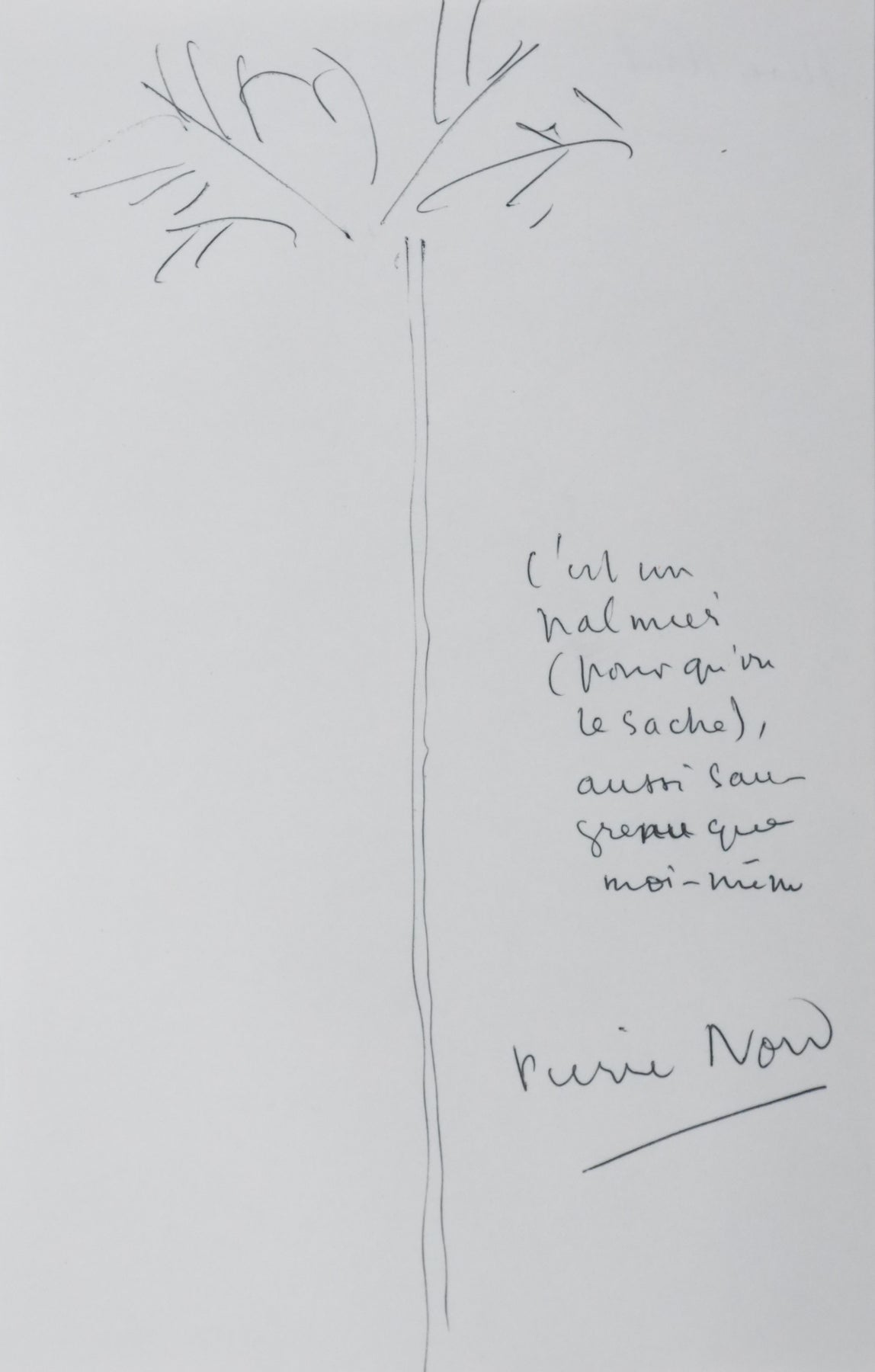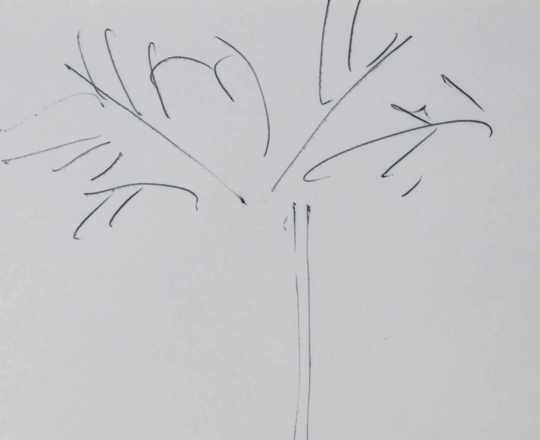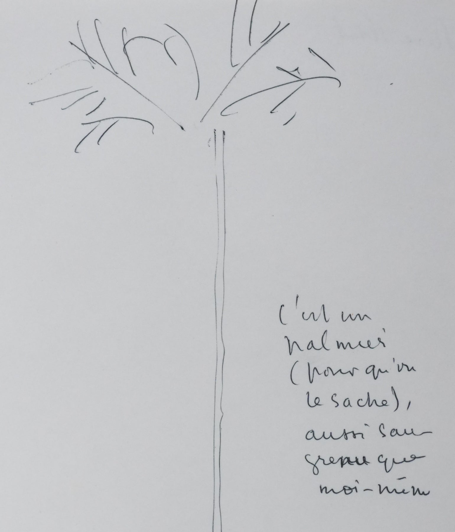 PROVENANCE : Ce dessin provient de la collection personnelle de Pierre Lhoste. Journaliste de radio, Pierre Lhoste (1913-1984) demanda aux personnalités qu’il recevait de réaliser un autographe accompagné d'un dessin d’arbre, constituant ainsi un témoignage unique de ses entretiens.