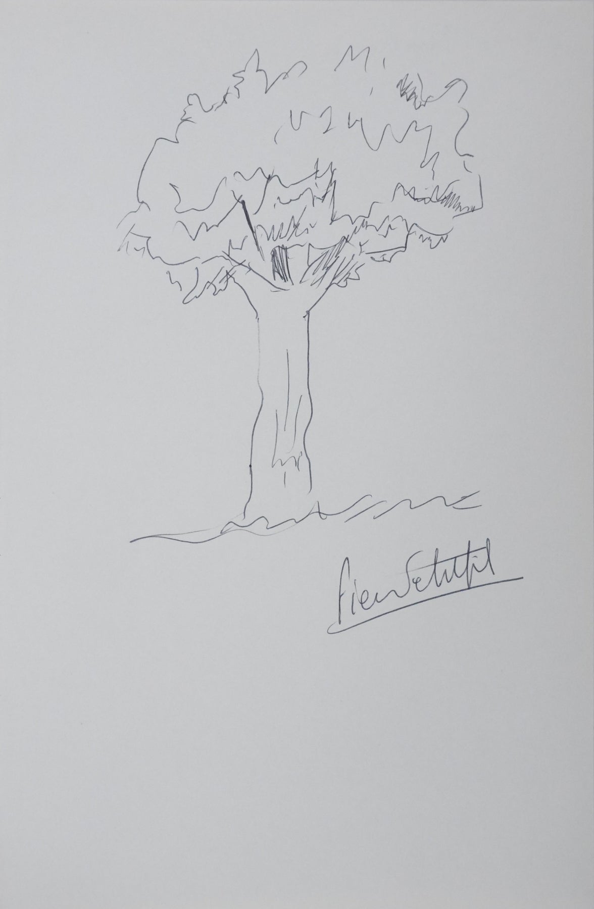 PROVENANCE : Ce dessin provient de la collection personnelle de Pierre Lhoste. Journaliste de radio, Pierre Lhoste (1913-1984) demanda aux personnalités qu’il recevait de réaliser un autographe accompagné d'un dessin d’arbre, constituant ainsi un témoignage unique de ses entretiens.
