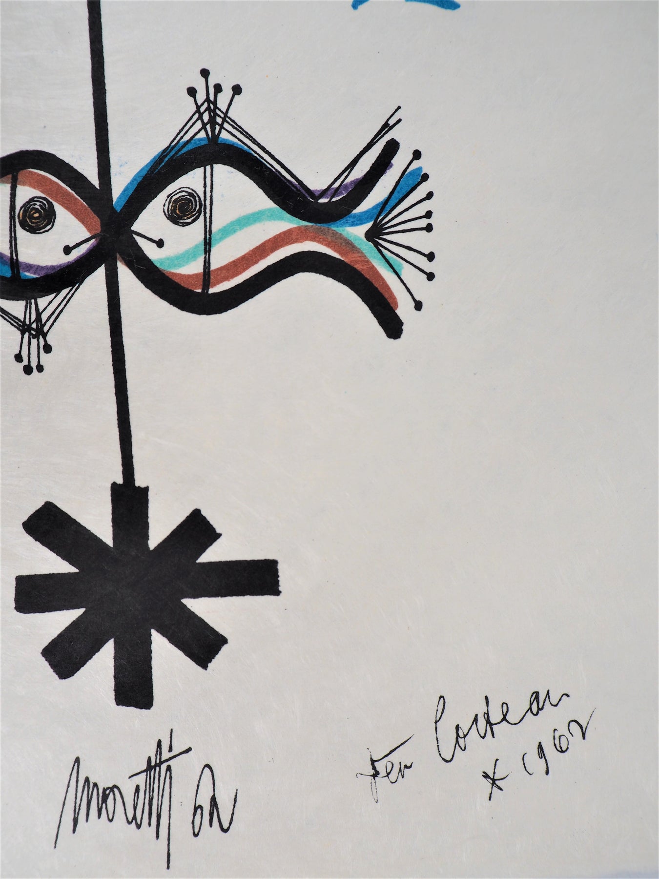 INFORMATIONS : Cette lithographie est tirée d'une série intitulée "L'Age du Verseau". L'édition, commencée en 1962, ne fut achevée qu'en 1973 à l'occasion du 10ème anniversaire de la mort de Jean Cocteau, décédé avant la fin de l'impression.