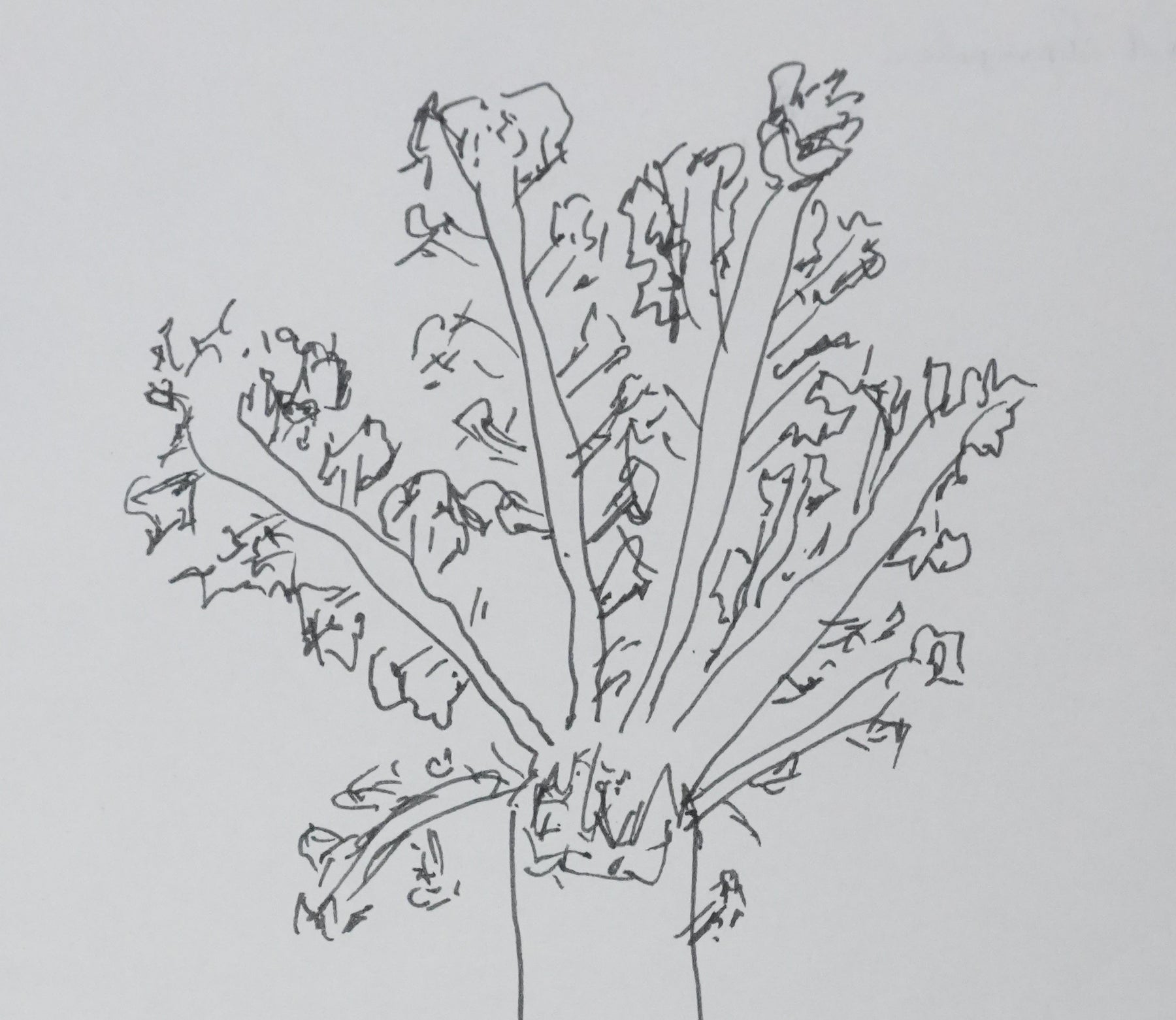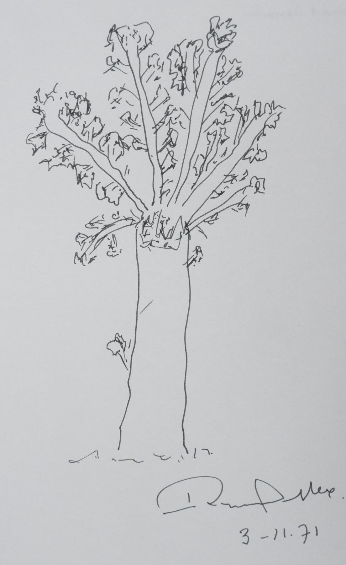 PROVENANCE : Ce dessin provient de la collection personnelle de Pierre Lhoste. Journaliste de radio, Pierre Lhoste (1913-1984) demanda aux personnalités qu’il recevait de réaliser un autographe accompagné d'un dessin d’arbre, constituant ainsi un témoignage unique de ses entretiens.