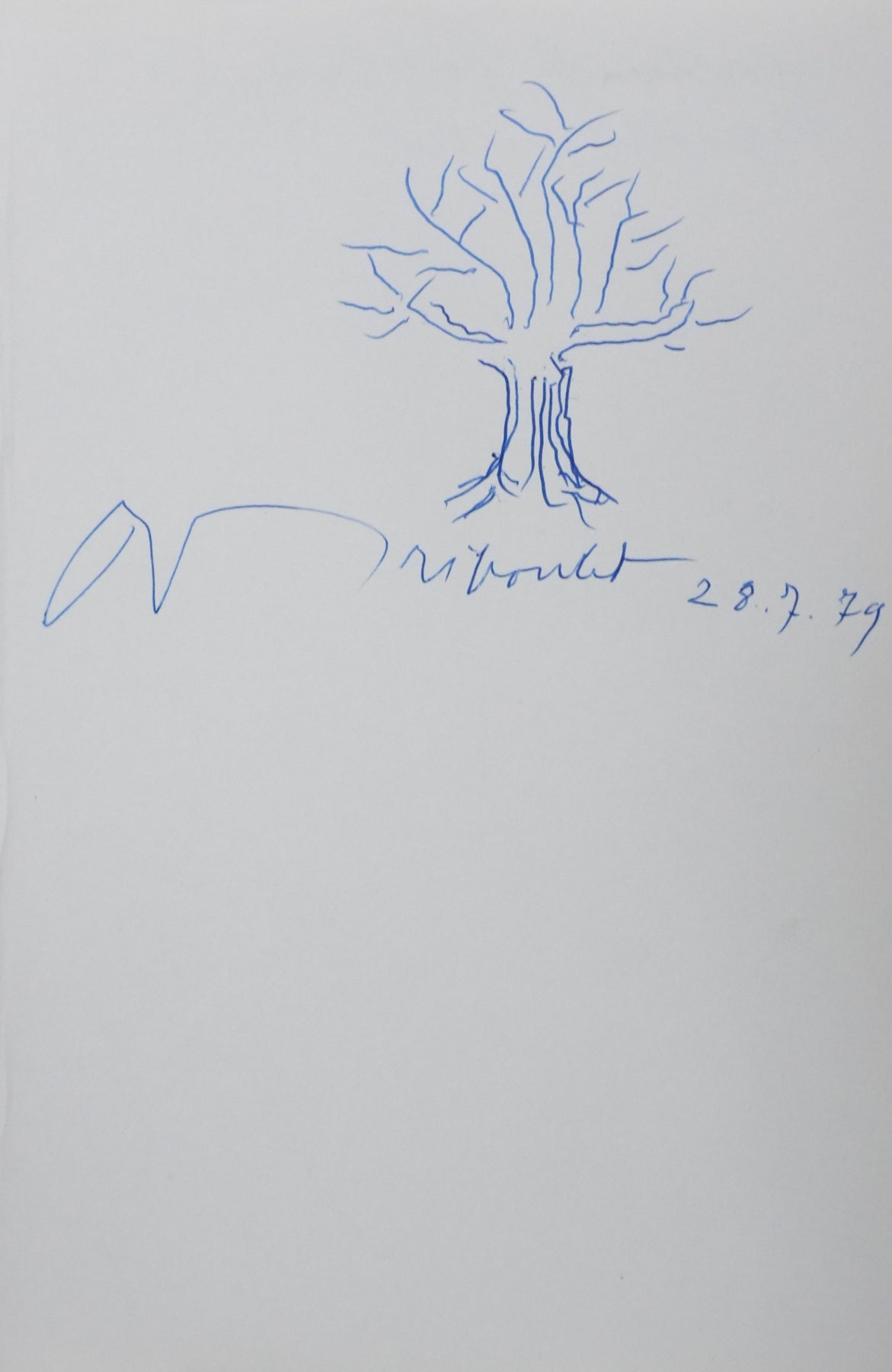 PROVENANCE : Ce dessin provient de la collection personnelle de Pierre Lhoste. Journaliste de radio, Pierre Lhoste (1913-1984) demanda aux personnalités qu’il recevait de réaliser un autographe accompagné d'un dessin d’arbre, constituant ainsi un témoignage unique de ses entretiens.