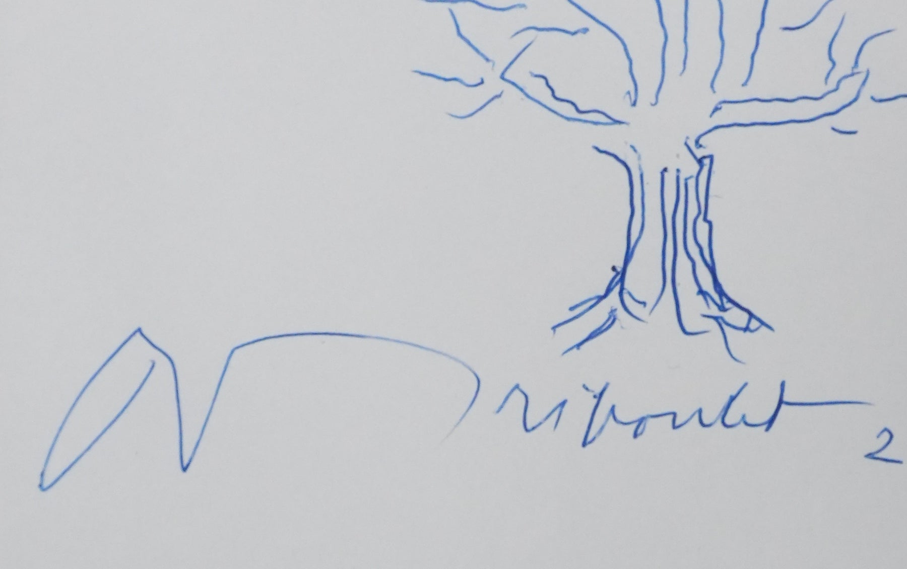 Raymond TRIBOULET : L'arbre aux mains, Autographe et dessin original signé