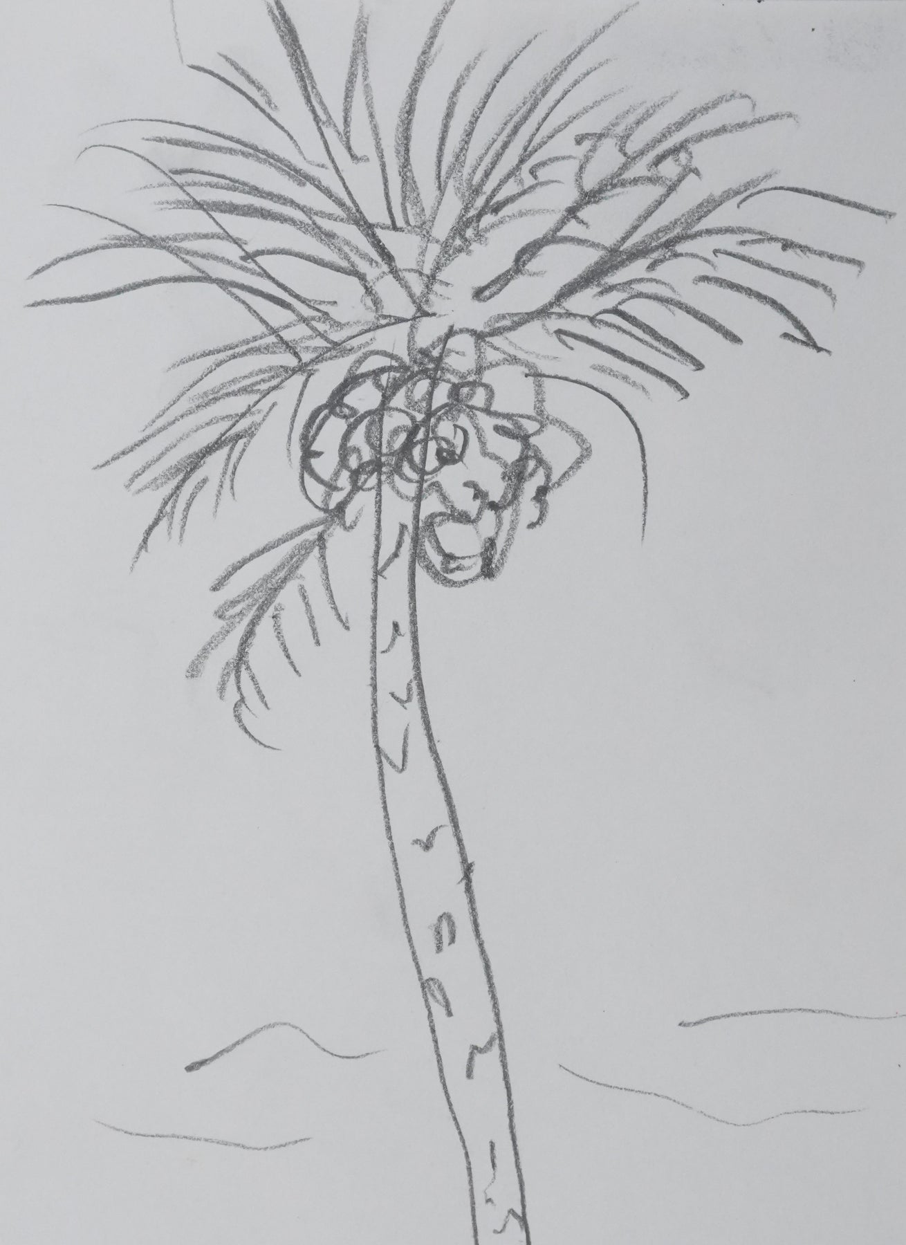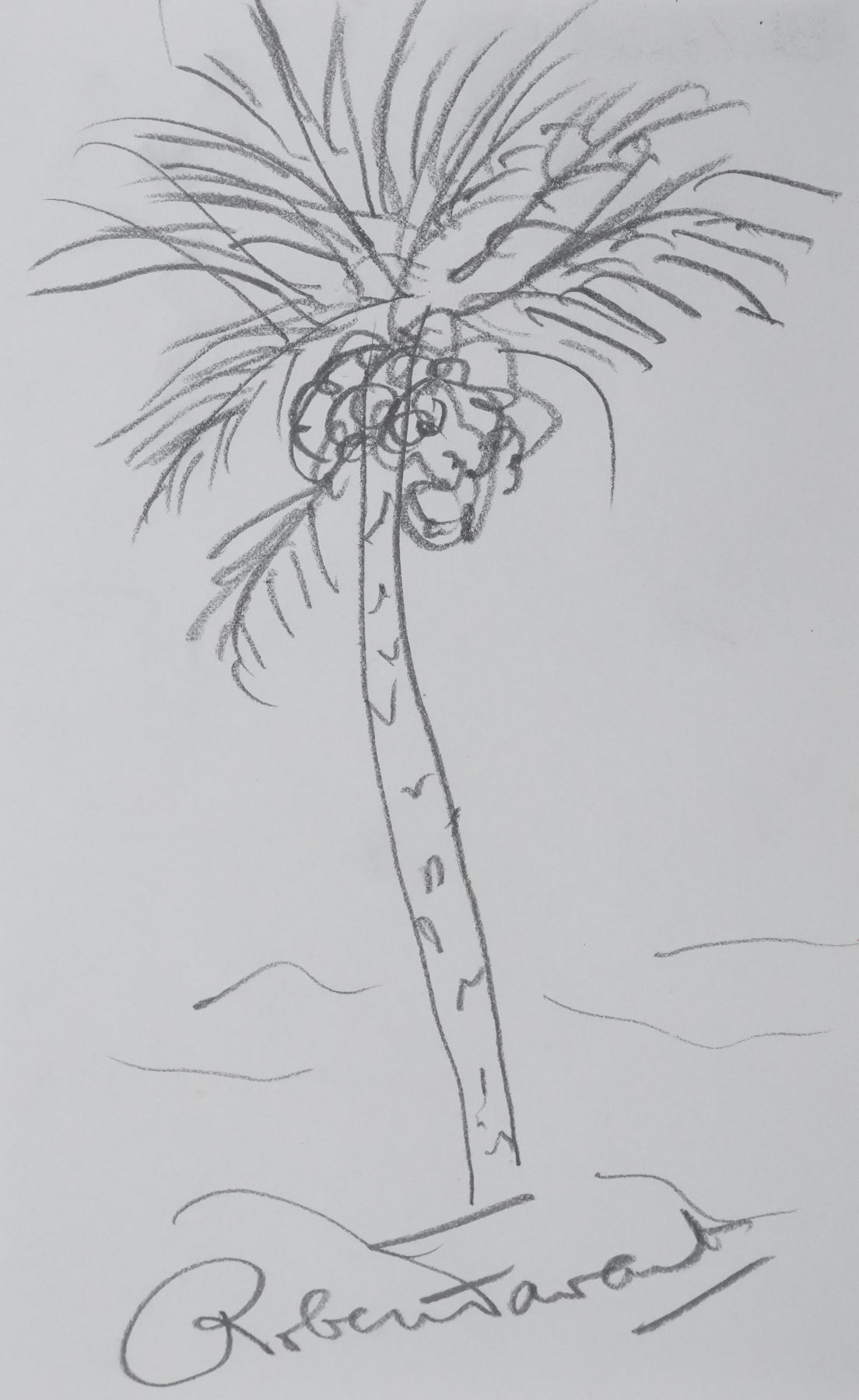Robert FAVART : Le cocotier, Autographe et dessin original signé