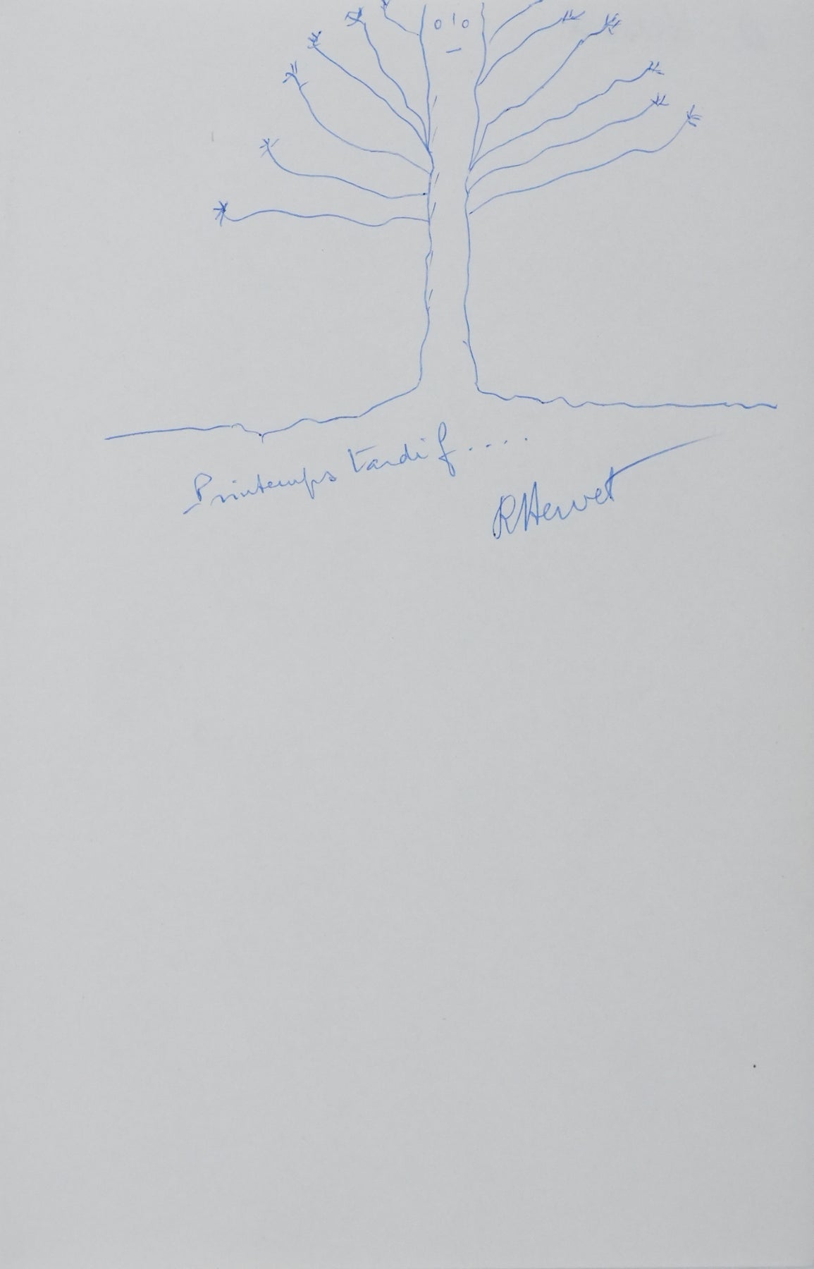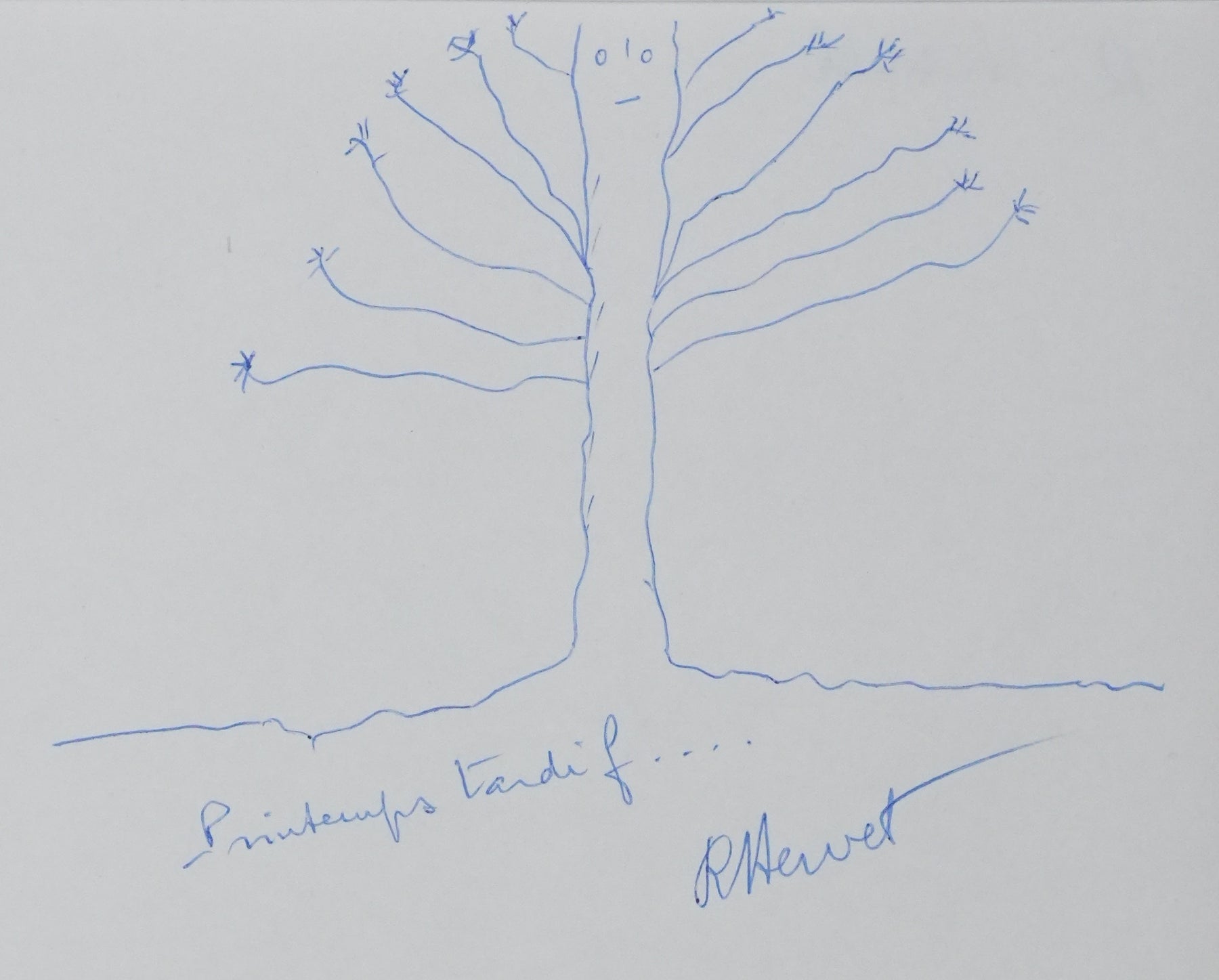 PROVENANCE : Ce dessin provient de la collection personnelle de Pierre Lhoste. Journaliste de radio, Pierre Lhoste (1913-1984) demanda aux personnalités qu’il recevait de réaliser un autographe accompagné d'un dessin d’arbre, constituant ainsi un témoignage unique de ses entretiens.