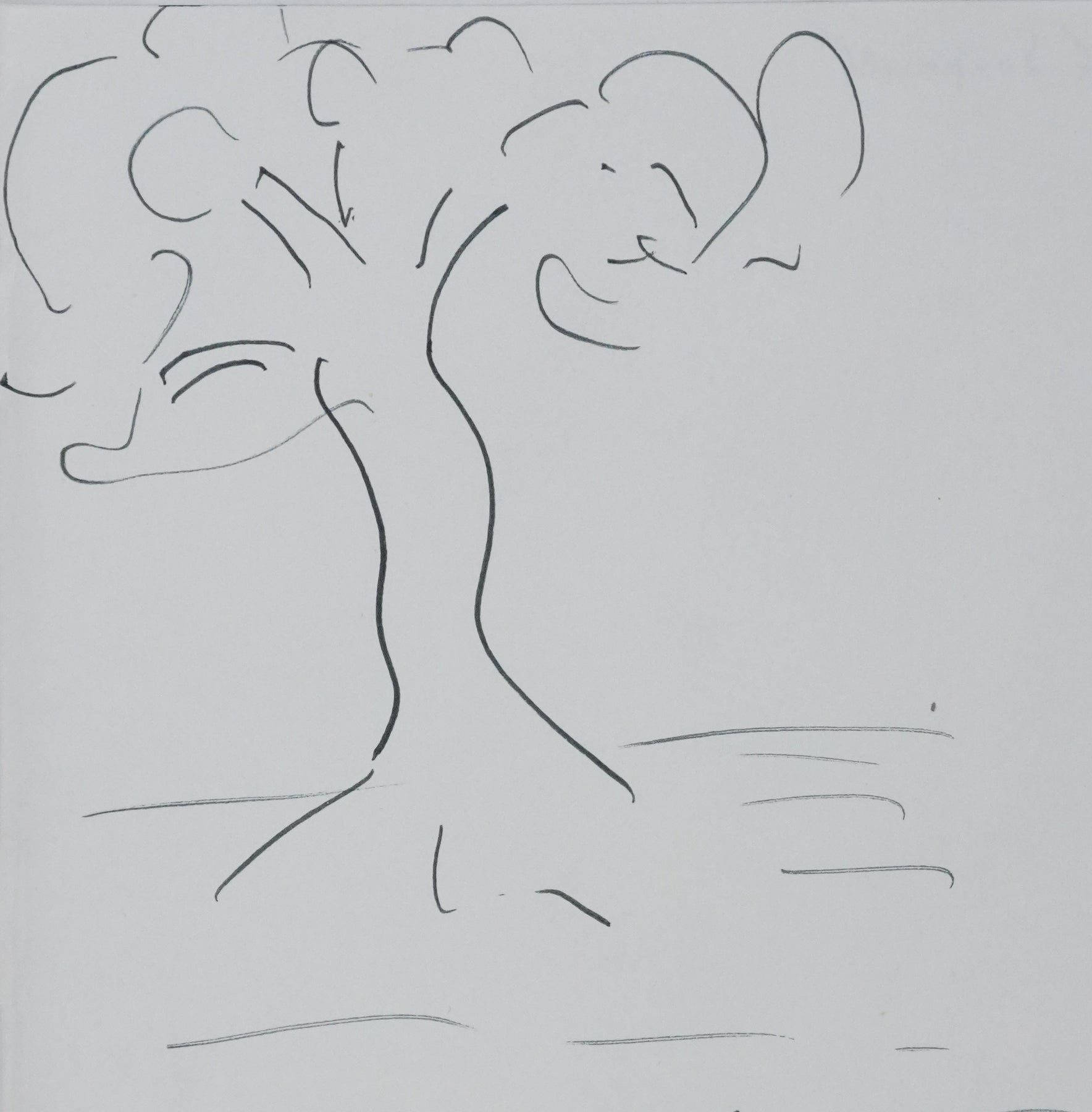 PROVENANCE : Ce dessin provient de la collection personnelle de Pierre Lhoste. Journaliste de radio, Pierre Lhoste (1913-1984) demanda aux personnalités qu’il recevait de réaliser un autographe accompagné d'un dessin d’arbre, constituant ainsi un témoignage unique de ses entretiens.