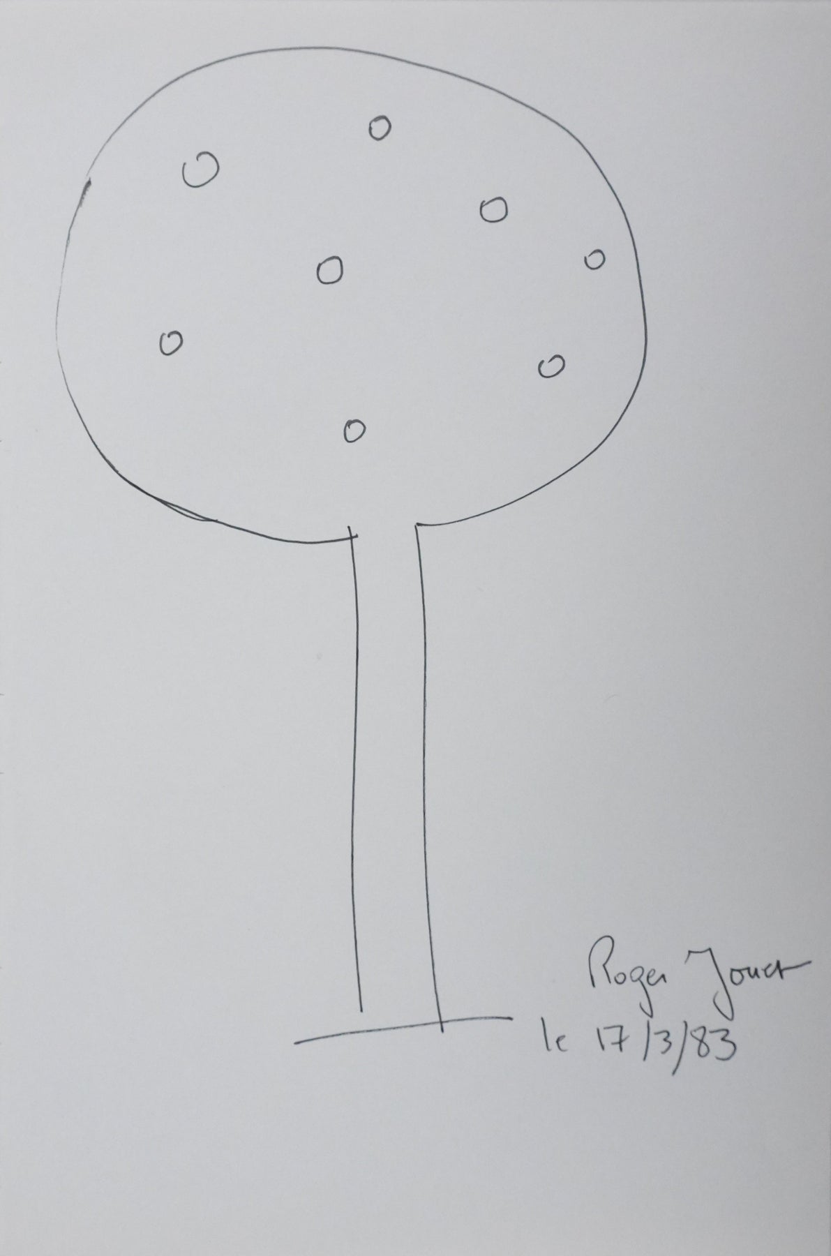 PROVENANCE : Ce dessin provient de la collection personnelle de Pierre Lhoste. Journaliste de radio, Pierre Lhoste (1913-1984) demanda aux personnalités qu’il recevait de réaliser un autographe accompagné d'un dessin d’arbre, constituant ainsi un témoignage unique de ses entretiens.