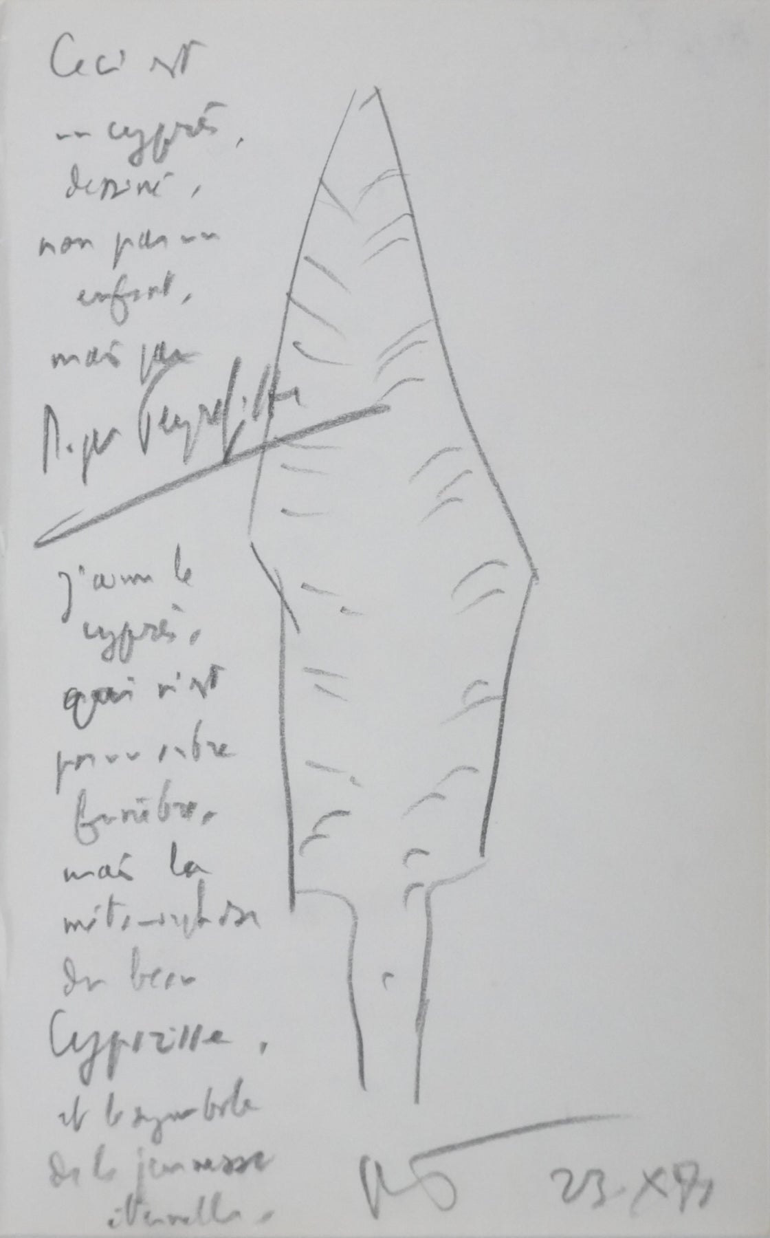 Roger PEYREFITTE : Ceci est un cyprès, Autographe et dessin original signée
