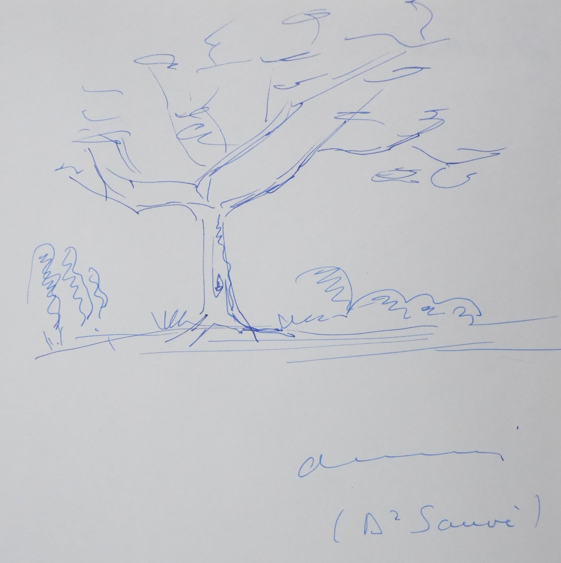 SAUVE : L'arbre de la prairie, Autographe et dessin original signé