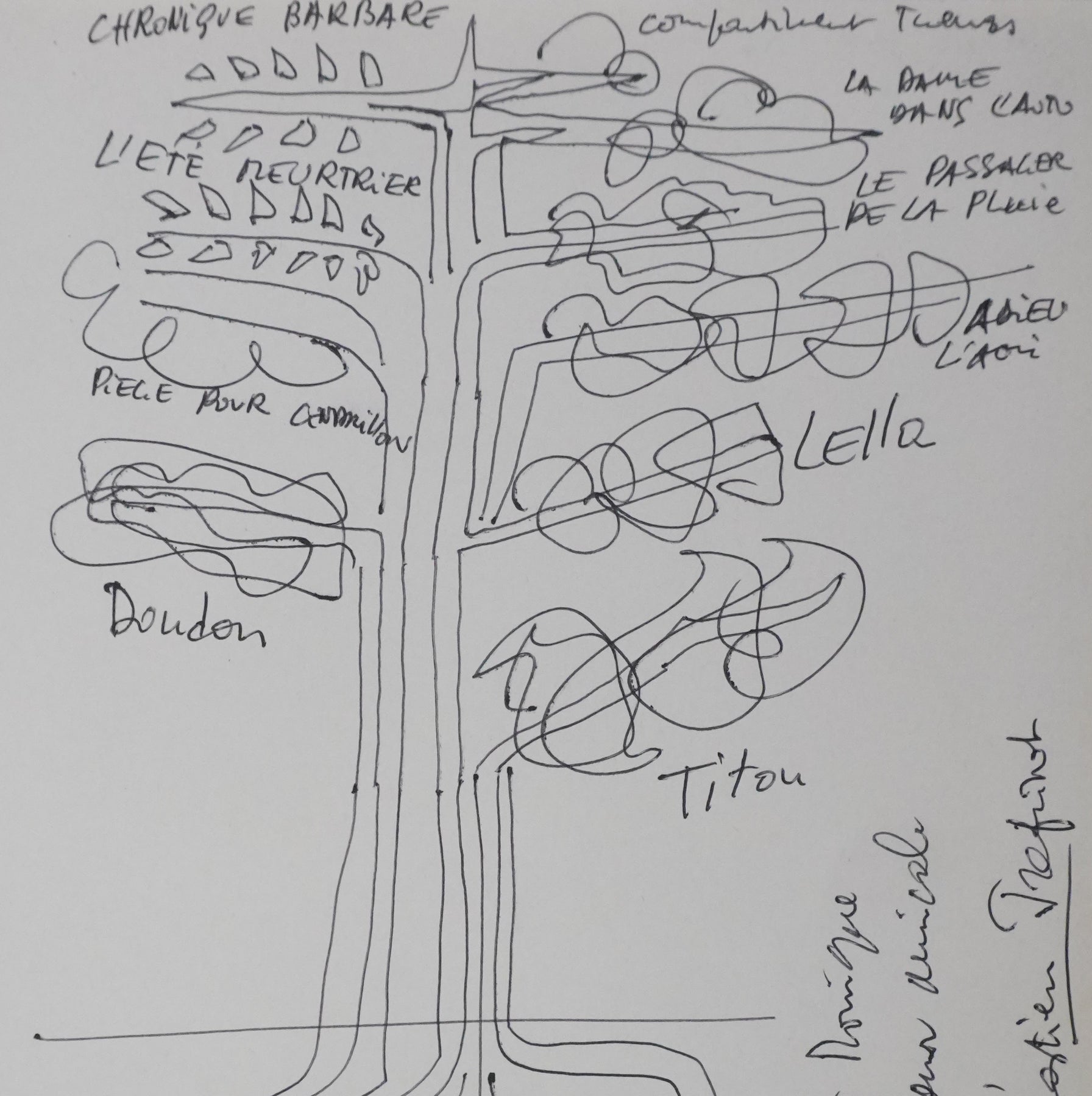 PROVENANCE : Ce dessin provient de la collection personnelle de Pierre Lhoste. Journaliste de radio, Pierre Lhoste (1913-1984) demanda aux personnalités qu’il recevait de réaliser un autographe accompagné d'un dessin d’arbre, constituant ainsi un témoignage unique de ses entretiens.