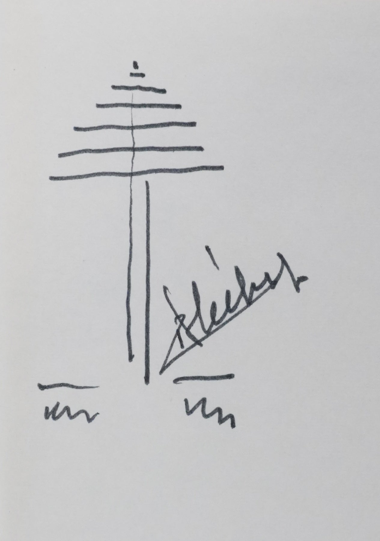 PROVENANCE : Ce dessin provient de la collection personnelle de Pierre Lhoste. Journaliste de radio, Pierre Lhoste (1913-1984) demanda aux personnalités qu’il recevait de réaliser un autographe accompagné d'un dessin d’arbre, constituant ainsi un témoignage unique de ses entretiens.