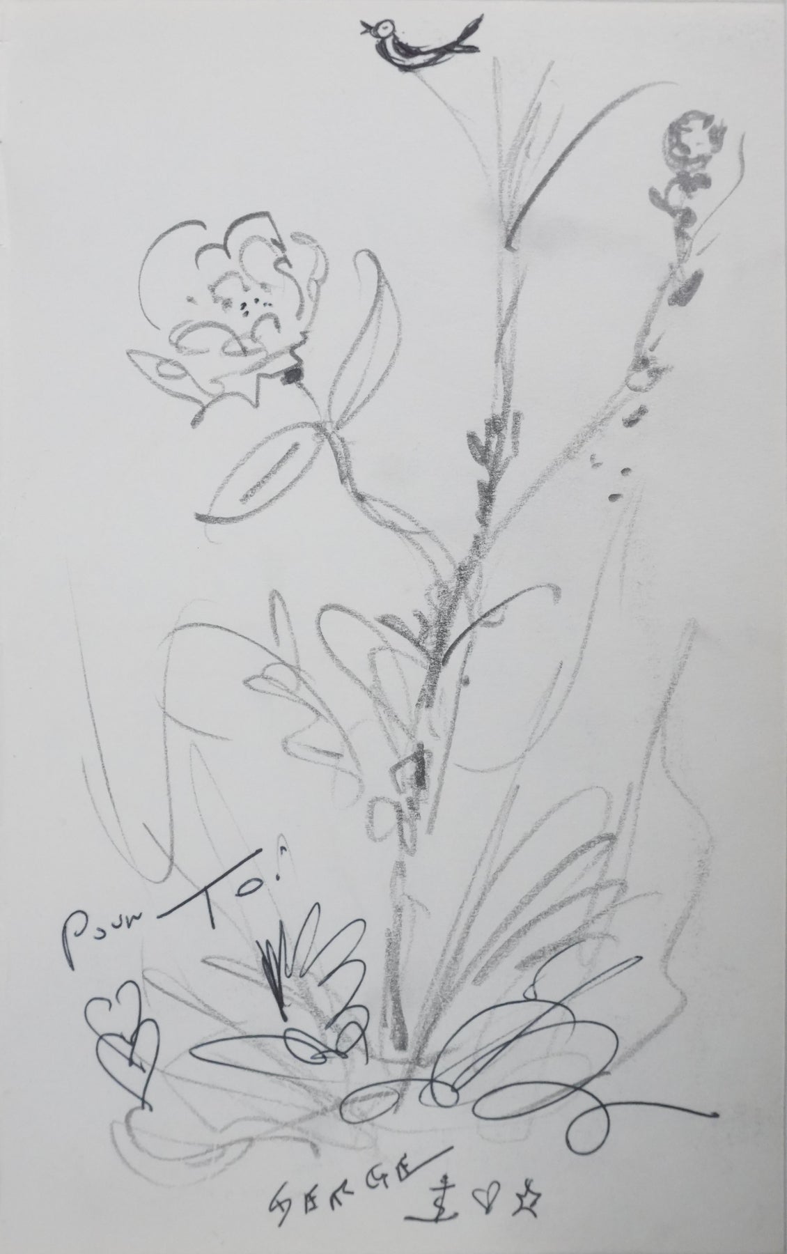 PROVENANCE : Ce dessin provient de la collection personnelle de Pierre Lhoste. Journaliste de radio, Pierre Lhoste (1913-1984) demanda aux personnalités qu’il recevait de réaliser un autographe accompagné d'un dessin d’arbre, constituant ainsi un témoignage unique de ses entretiens.