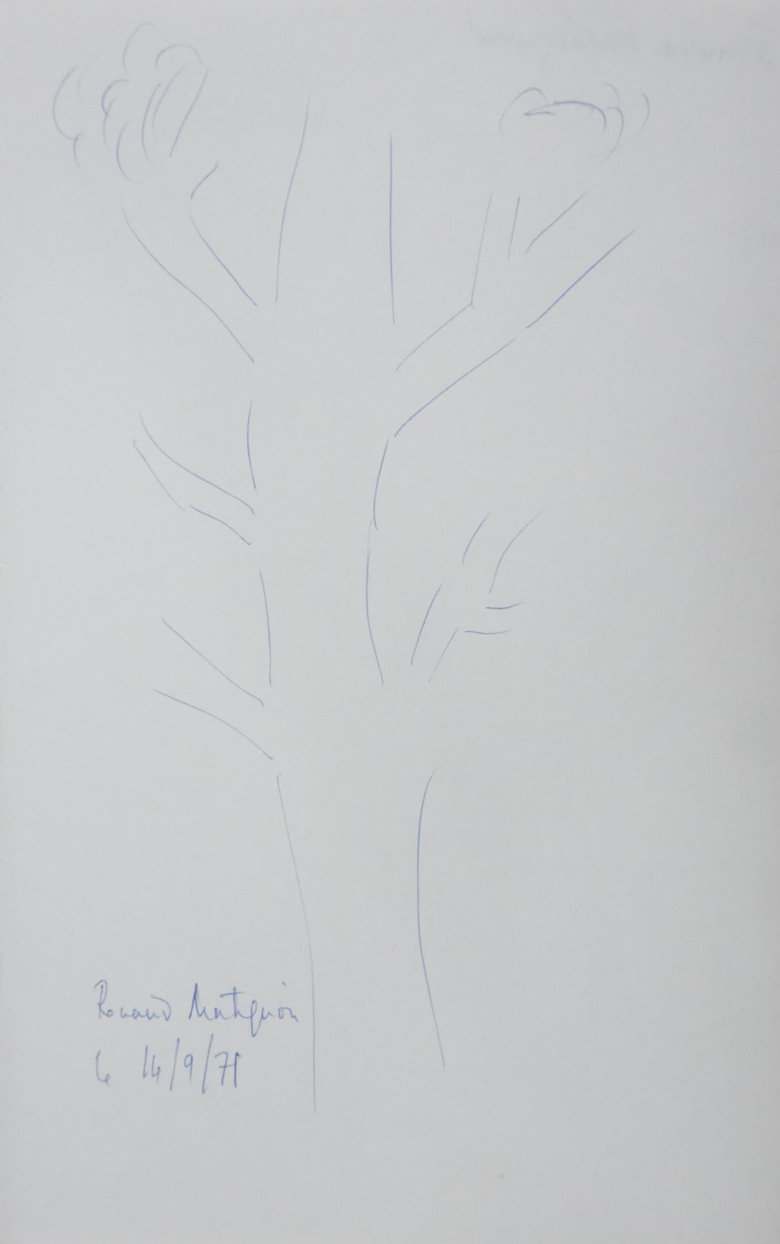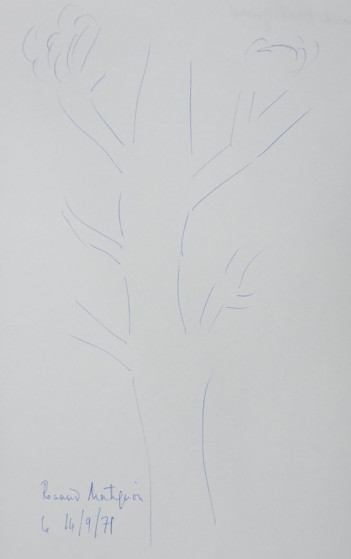 PROVENANCE : Ce dessin provient de la collection personnelle de Pierre Lhoste. Journaliste de radio, Pierre Lhoste (1913-1984) demanda aux personnalités qu’il recevait de réaliser un autographe accompagné d'un dessin d’arbre, constituant ainsi un témoignage unique de ses entretiens.