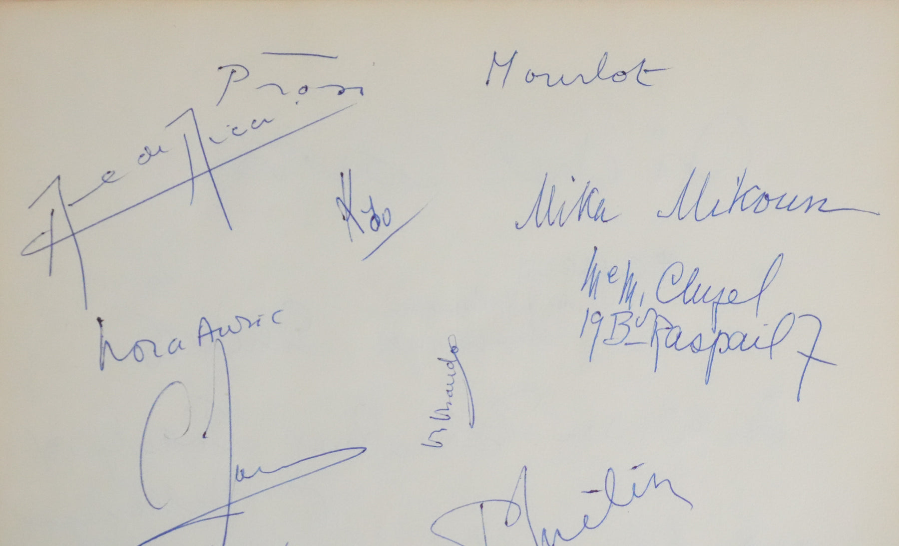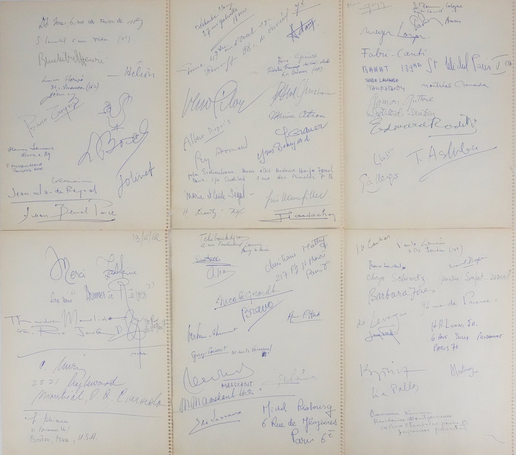 PROVENANCE : Livre d'or de la galerie Suzanne Weill (Paris) en 1962. Ensemble d'autographes laissés lors d'une exposition de Zadkine.