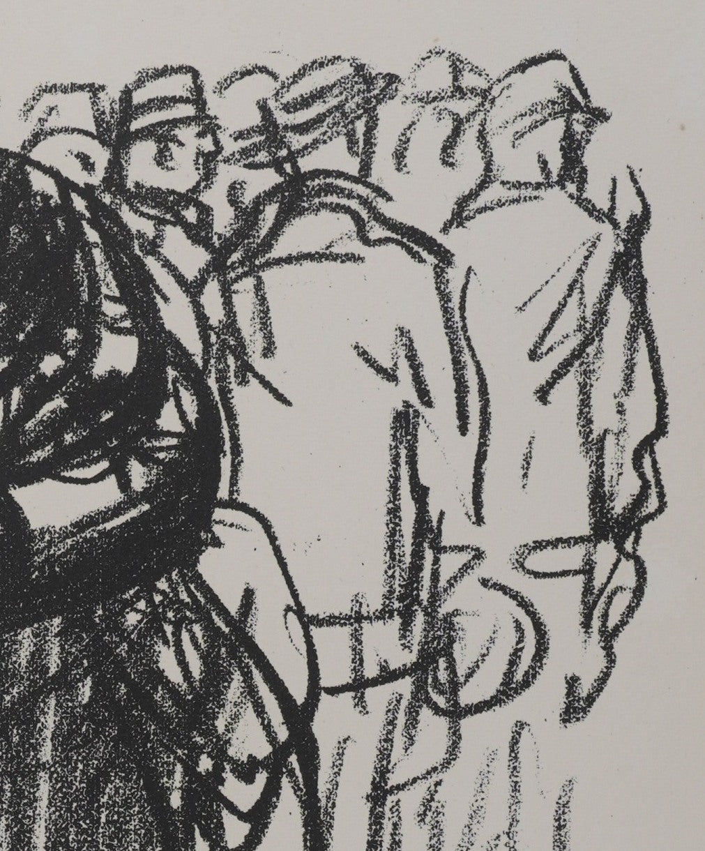 INFORMATIONS : Cette lithographie est issue du portfolio Croquis en temps de guerre N°1, publié en 1919 par les éditions La Guerre (Paris). L’album réunit dix-huit lithographies retraçant des scènes de 1914 à 1916. Annoncé comme le premier d’une série de quatre, il resta finalement unique.