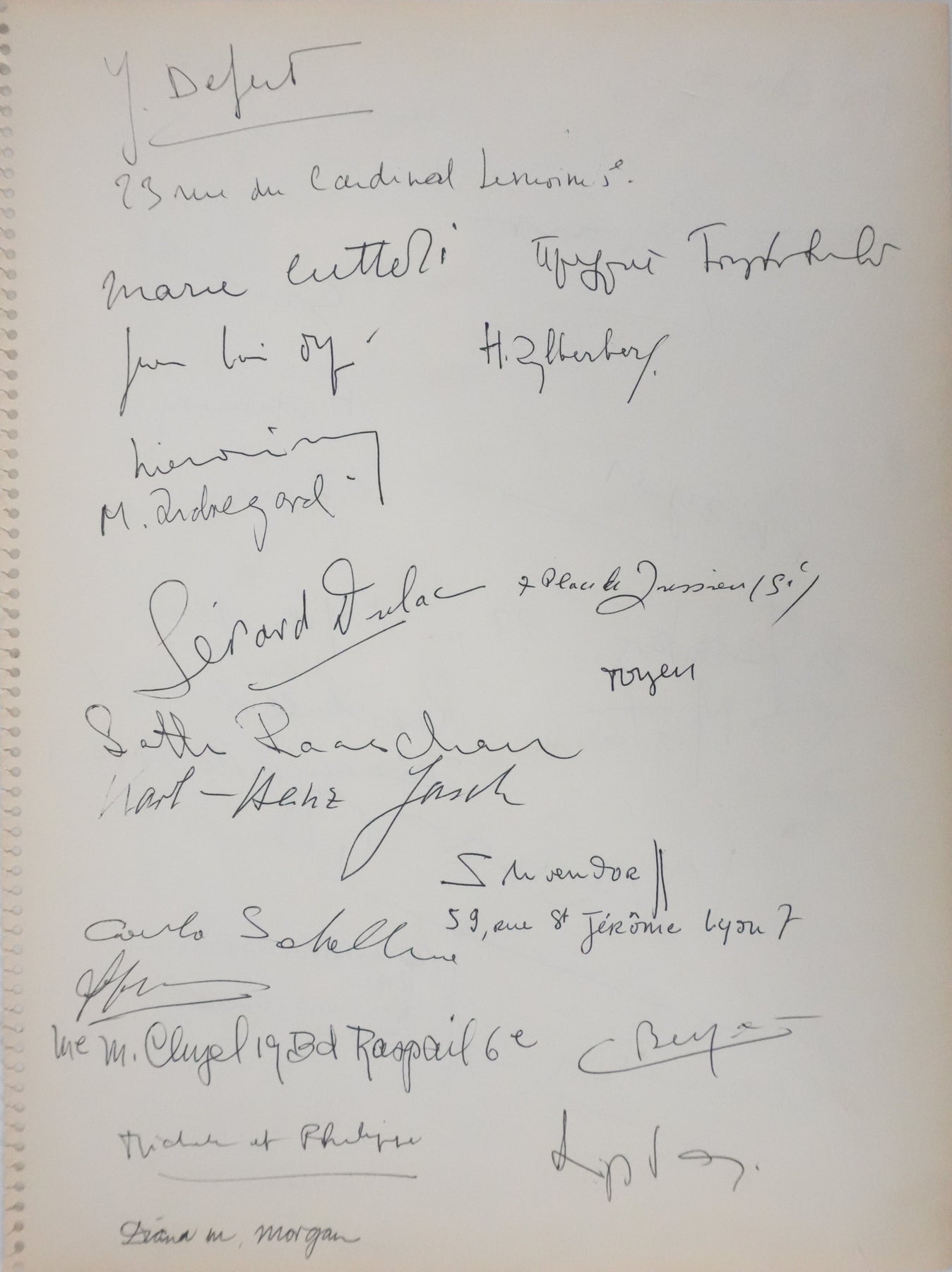 PROVENANCE : Livre d'or de la galerie Suzanne Weill (Paris) en 1964. Ensemble d'autographes laissés lors de l'exposition Les chiens ont soifs par Max Ernst, avec les textes de Jacques Prévert.