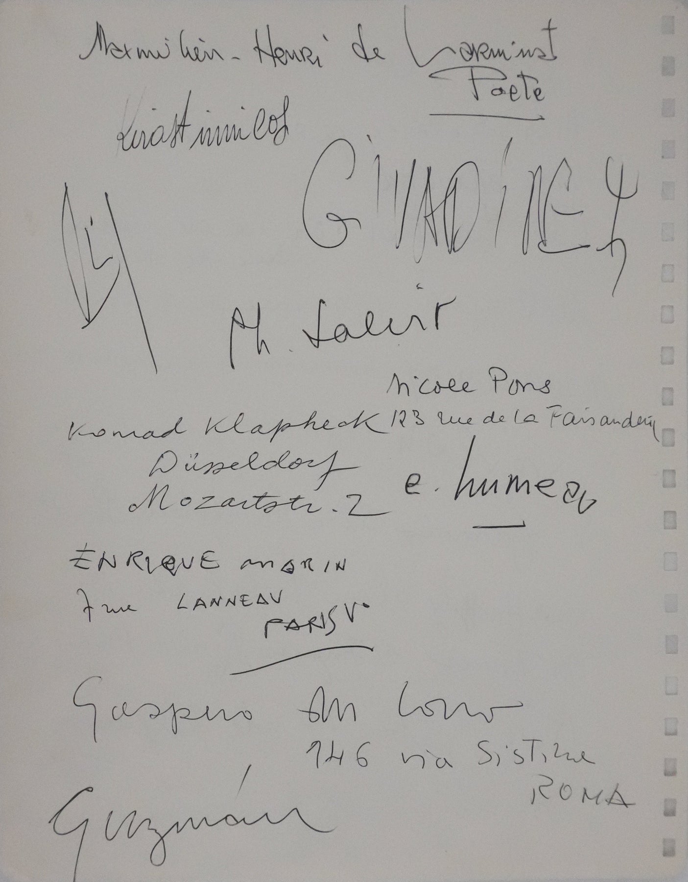 PROVENANCE : Livre d'or de la galerie le Point Cardinal (Paris) entre 1962 et 1964. Ensemble d'autographes laissés lors des expositions d'Unica ZURN, peintre et poétesse allemande, compagne d'Hans BELLMER.