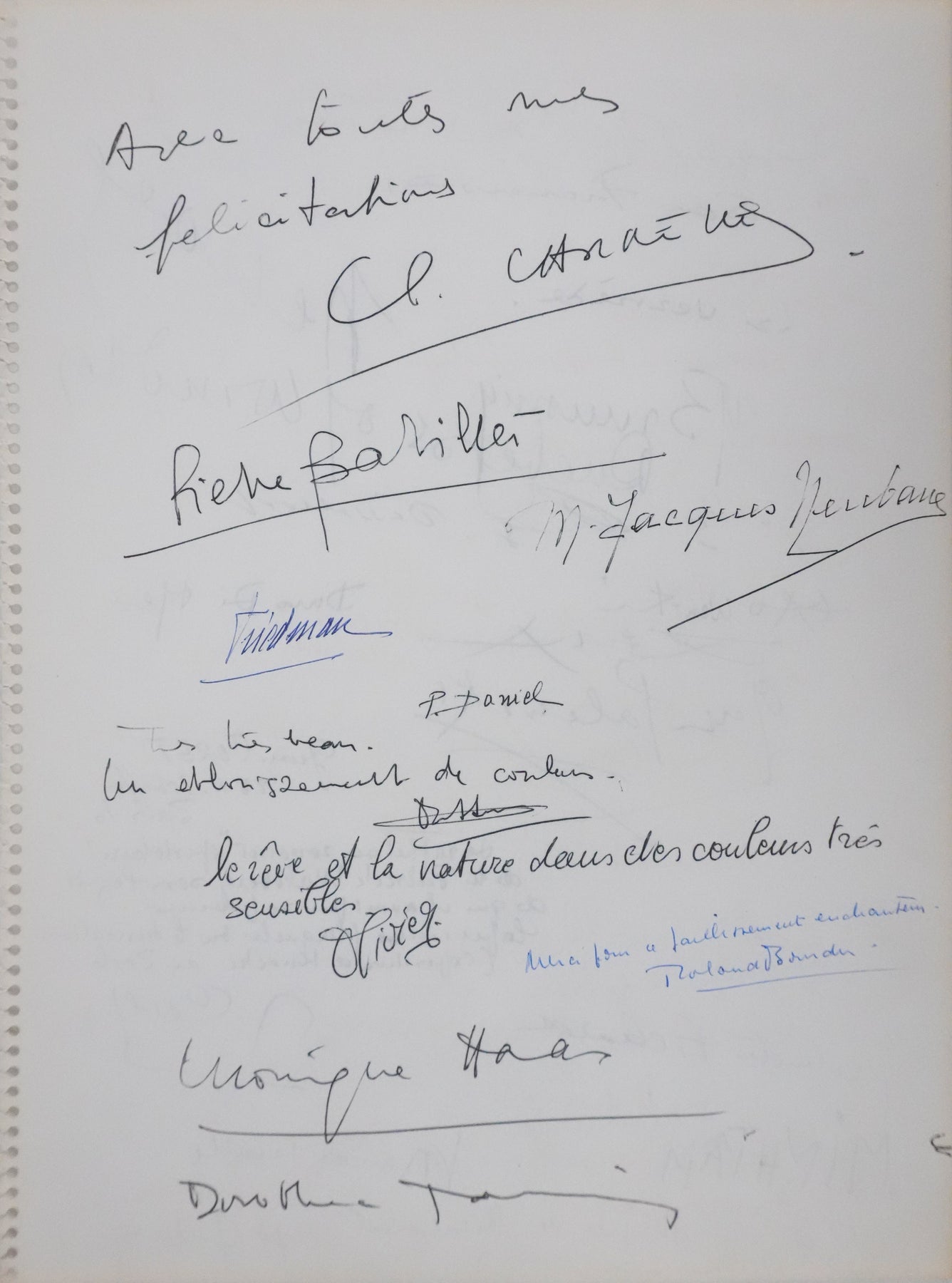 PROVENANCE : Livre d'or de la galerie Suzanne Weill (Paris) en 1968. Ensemble d'autographes laissés lors d'une exposition de Nora Auric.